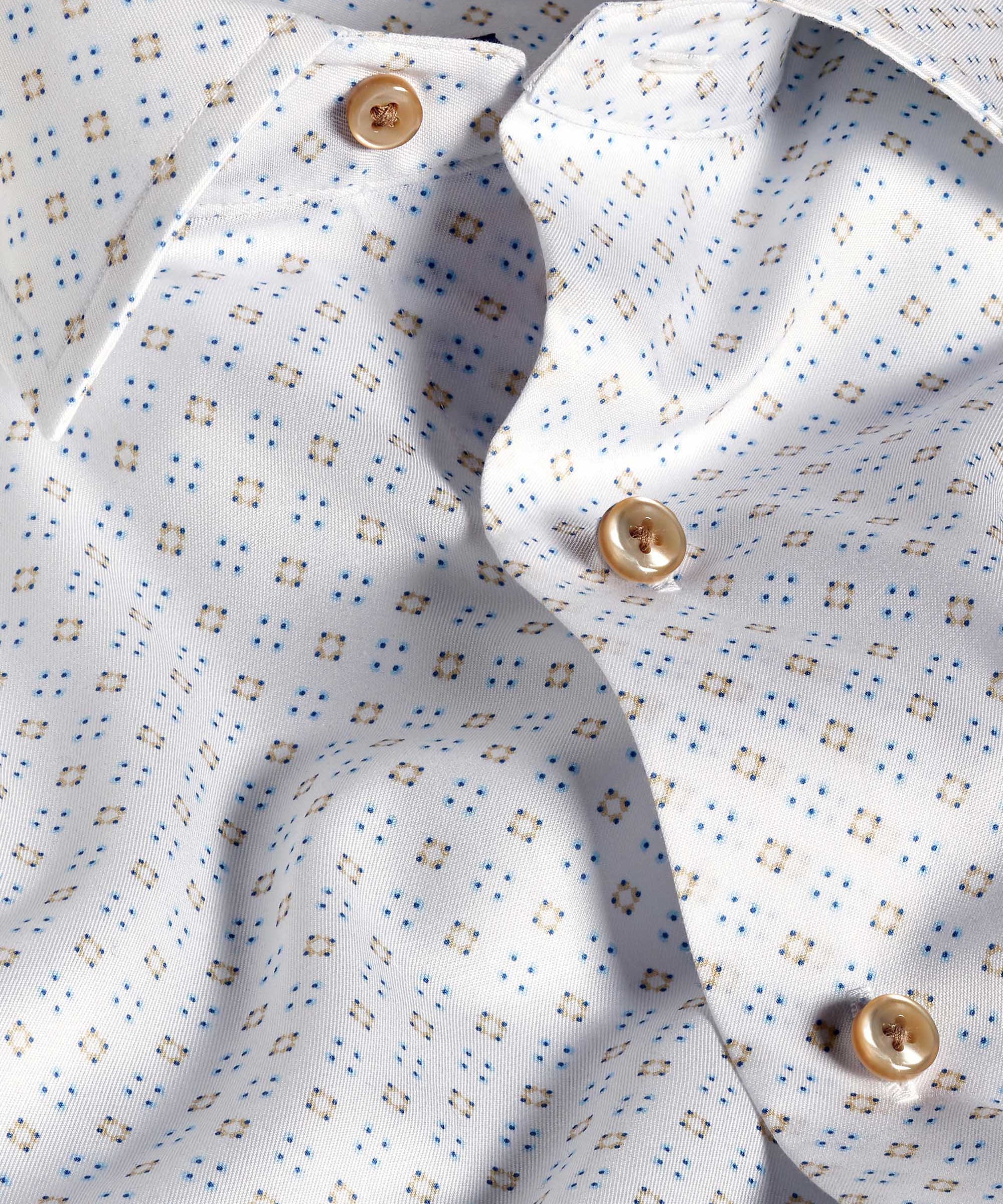 White & Blue Micro Dobby Dot Dress Shirt