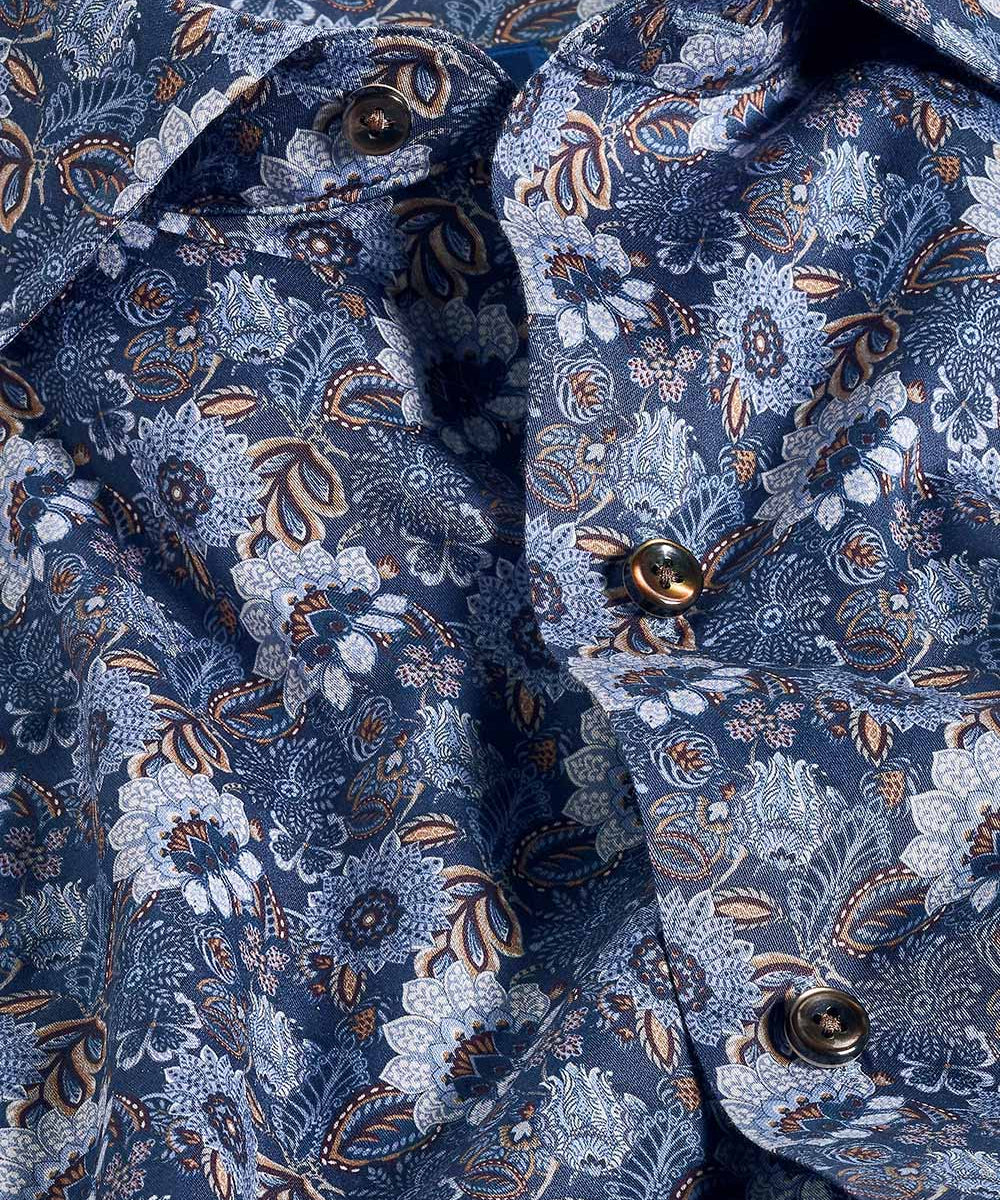 Navy Floral Print Sport Shirt