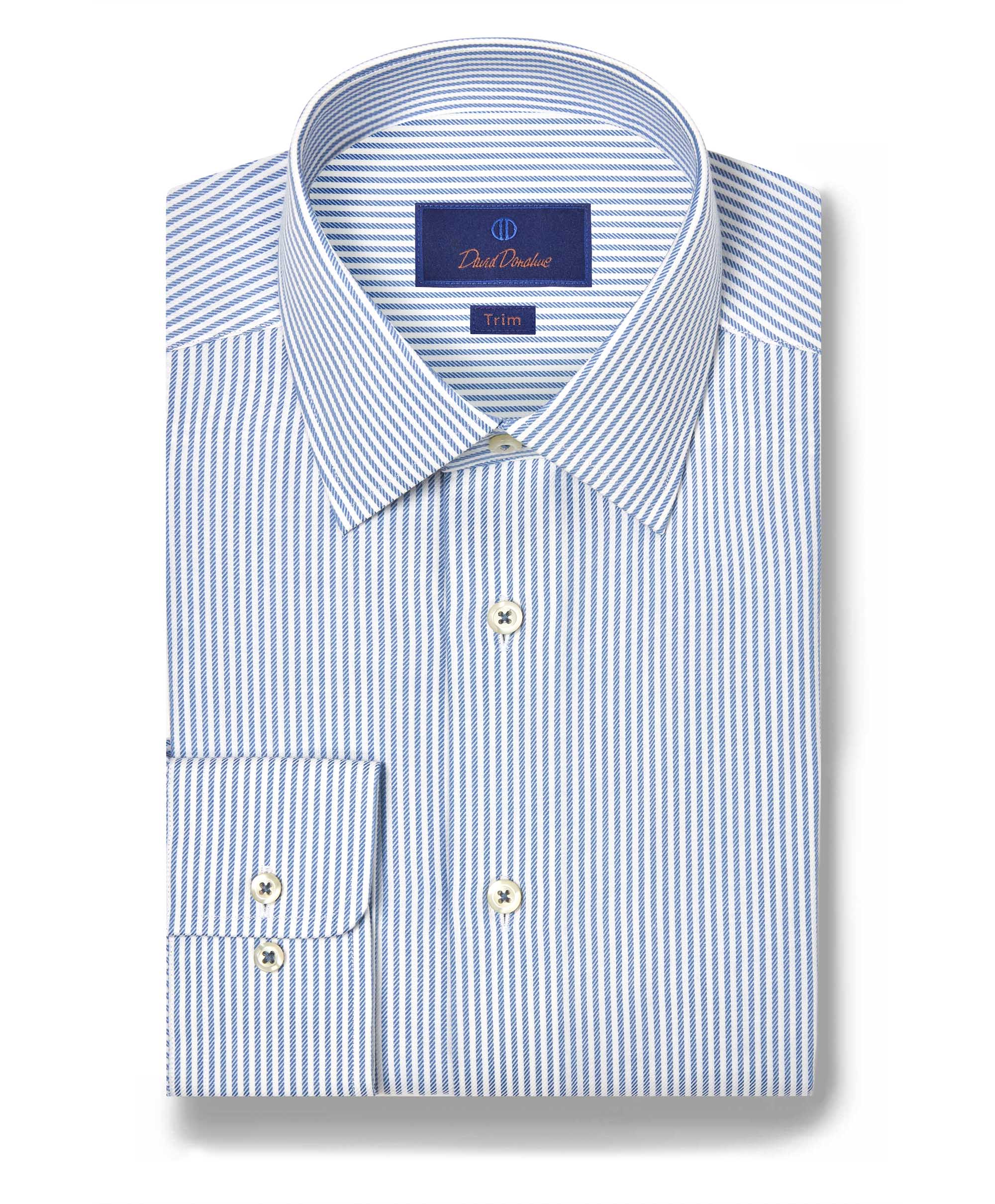 White & Blue Stripe Cashmere Blend Dress Shirt