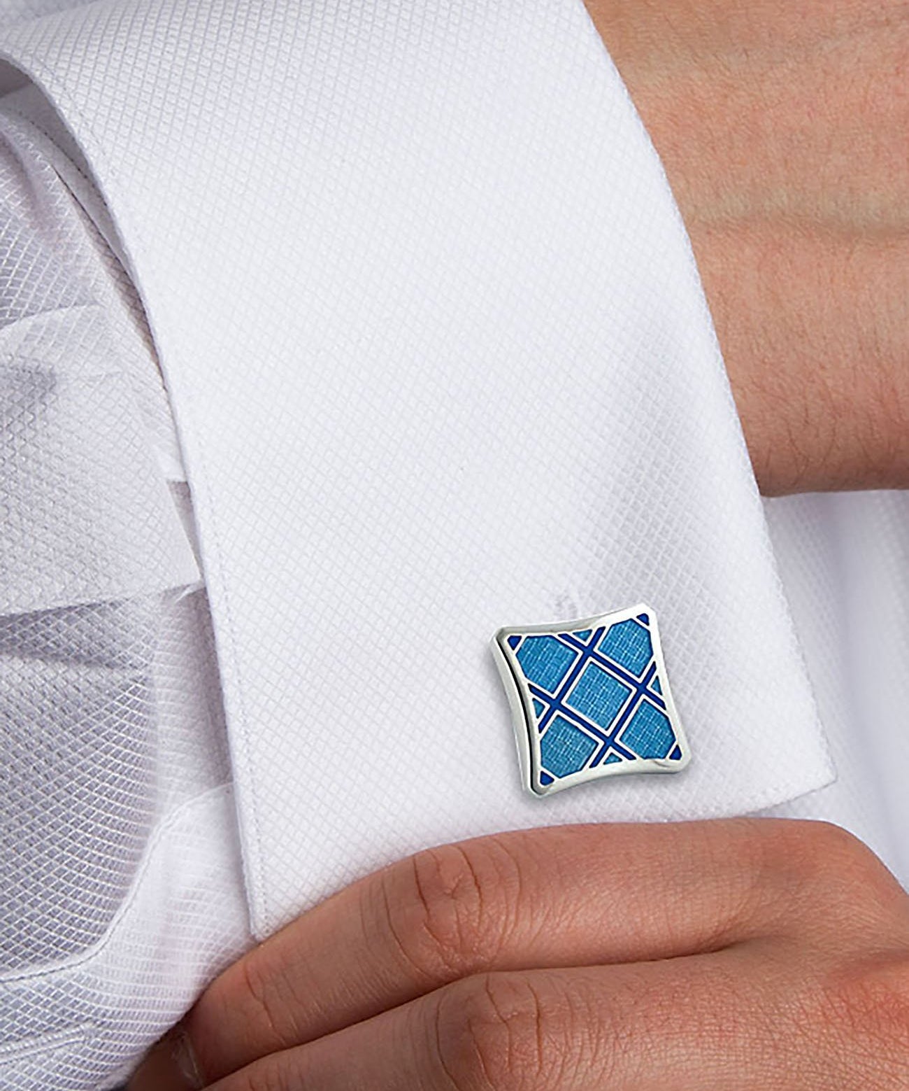 Sterling Checkerboard Blue & Light Blue Cufflinks