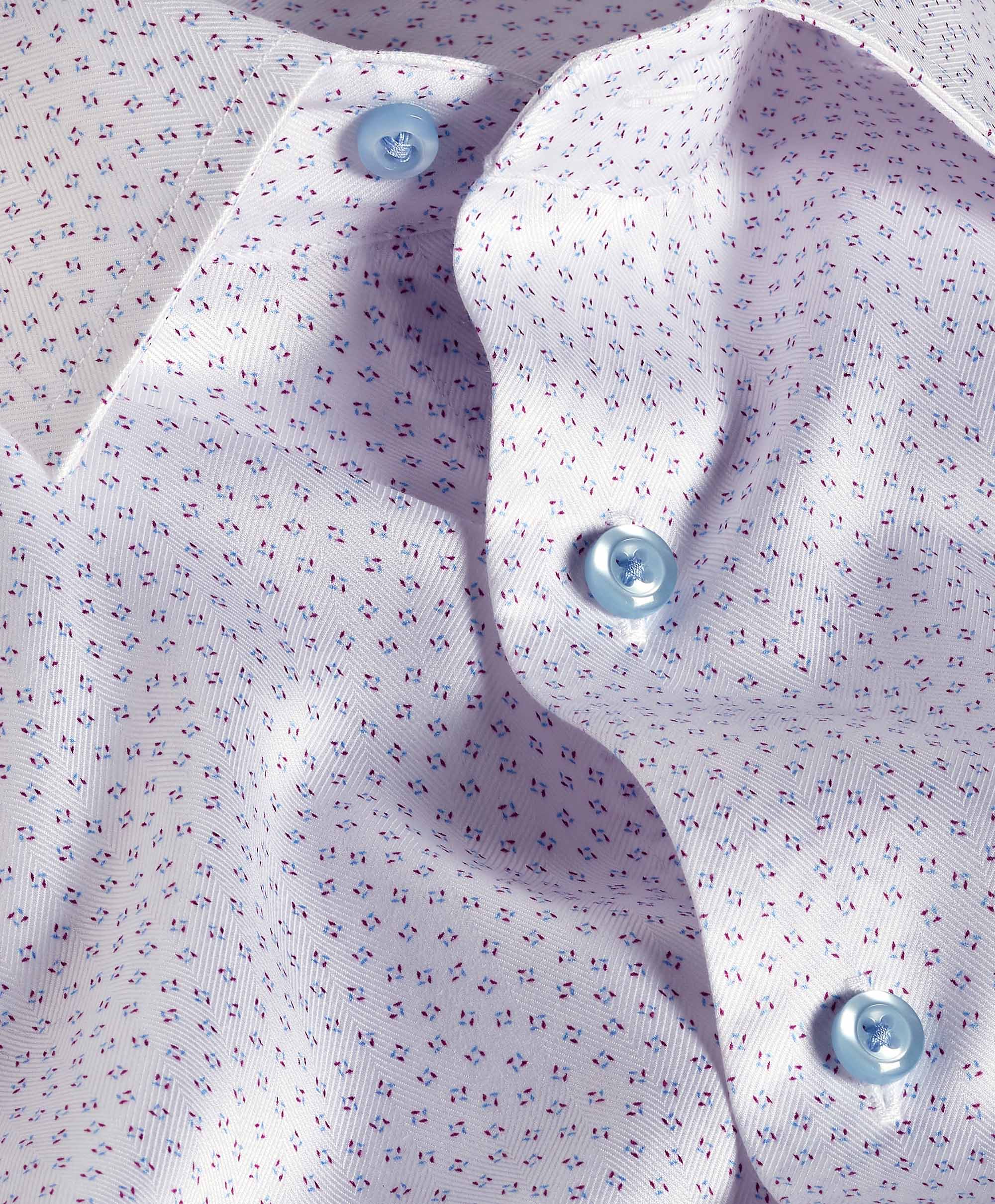 A patterned dress shirt designed with restraint. Crafted from smooth, breathable cotton, it wears comfortably with a clean drape that stays composed. Featuring a tasteful print with balanced spacing, adding interest without overpowering a suit or feeling loud on its own.