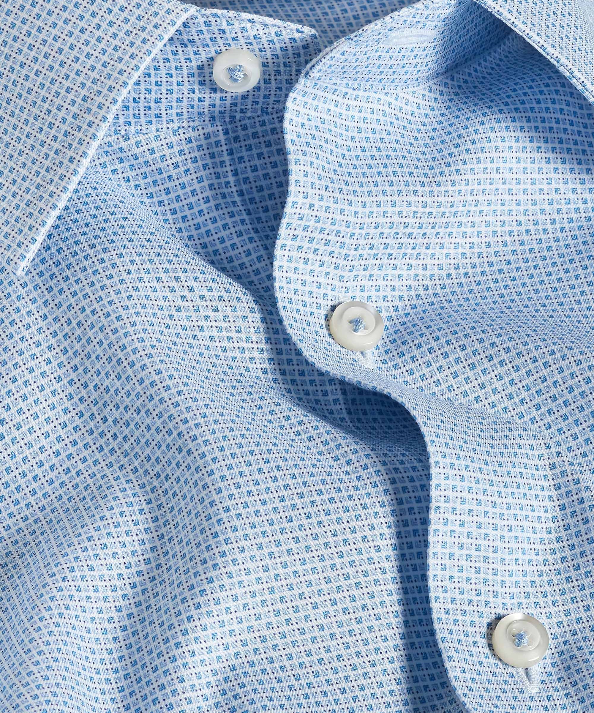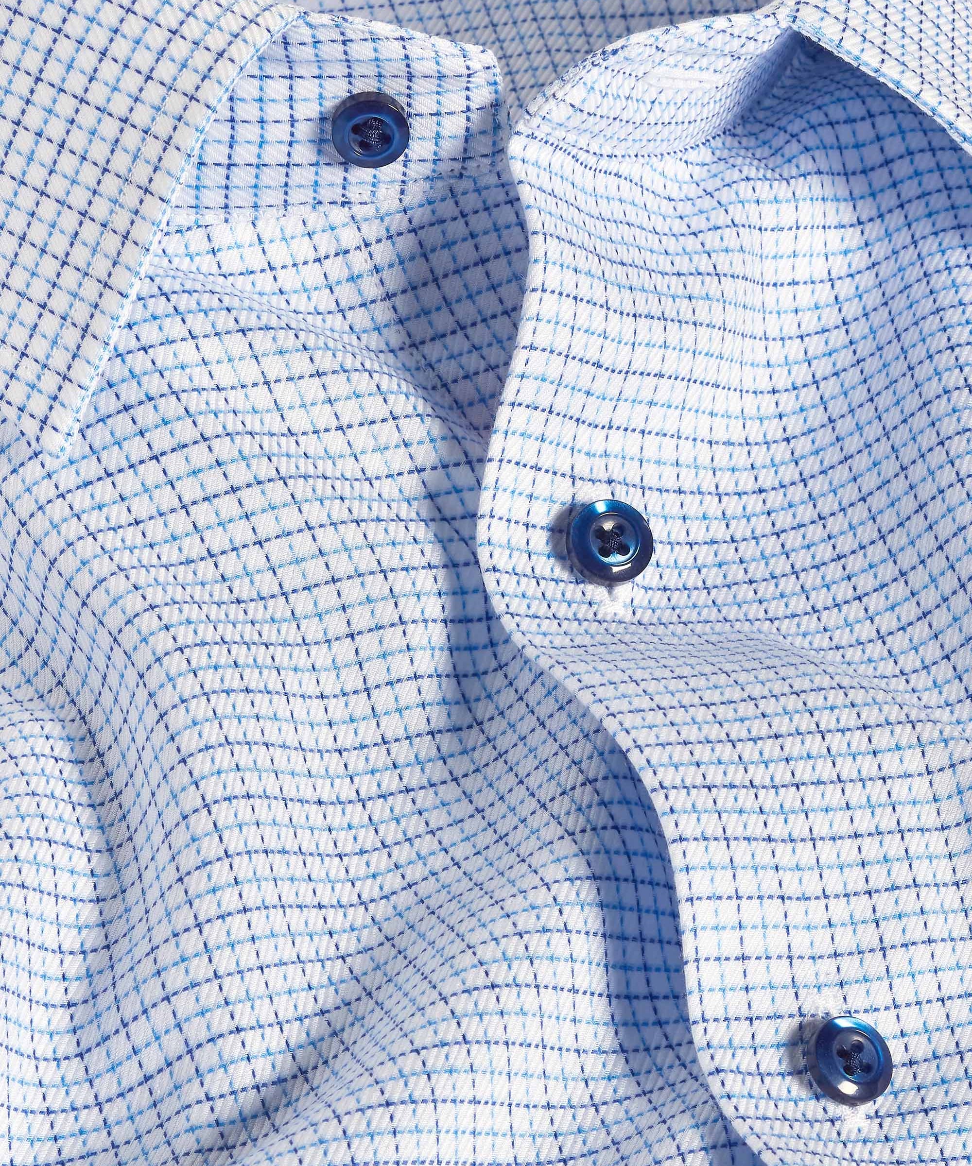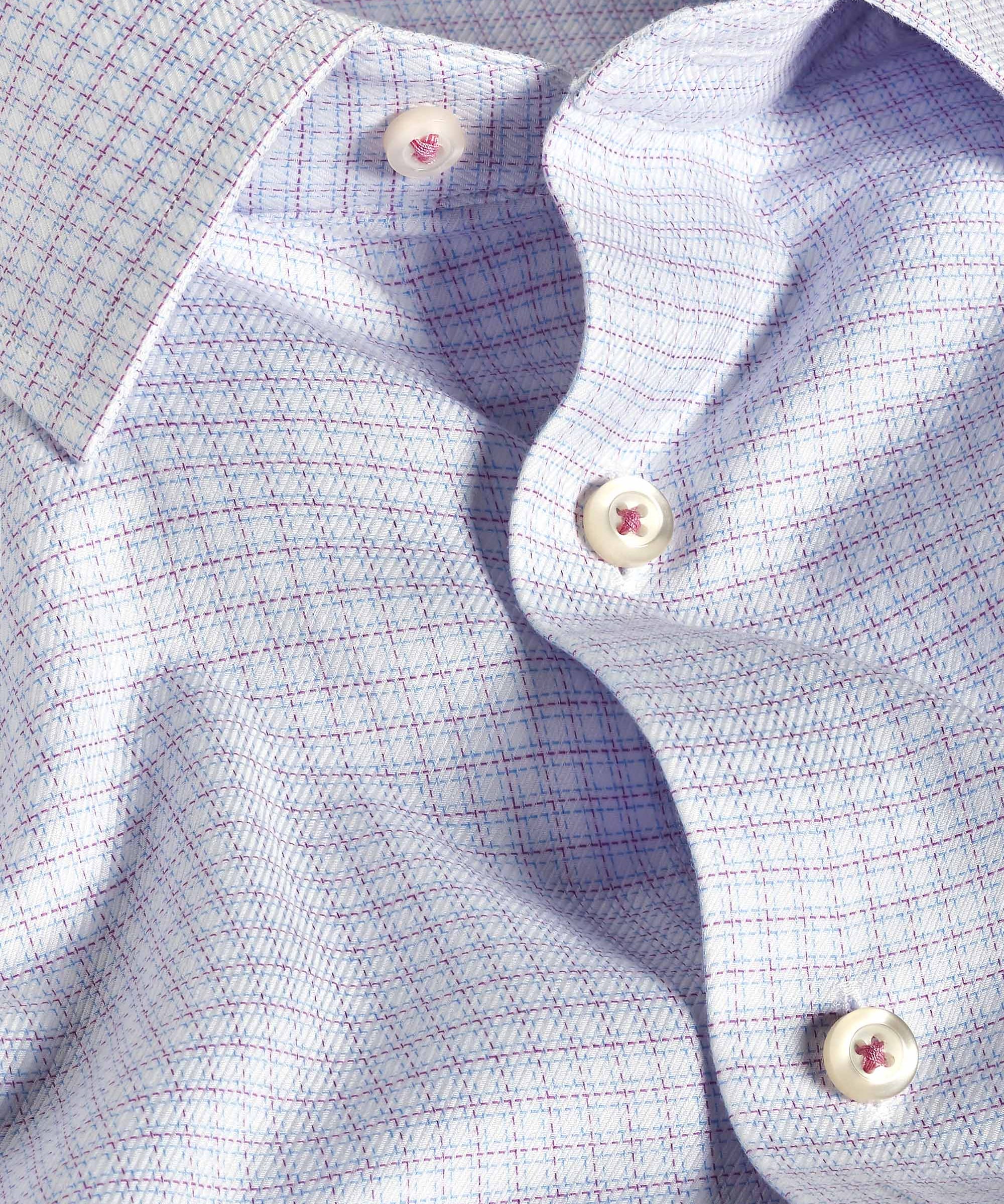 Pearl & White Twill Micro Check Stretch Dress Shirt