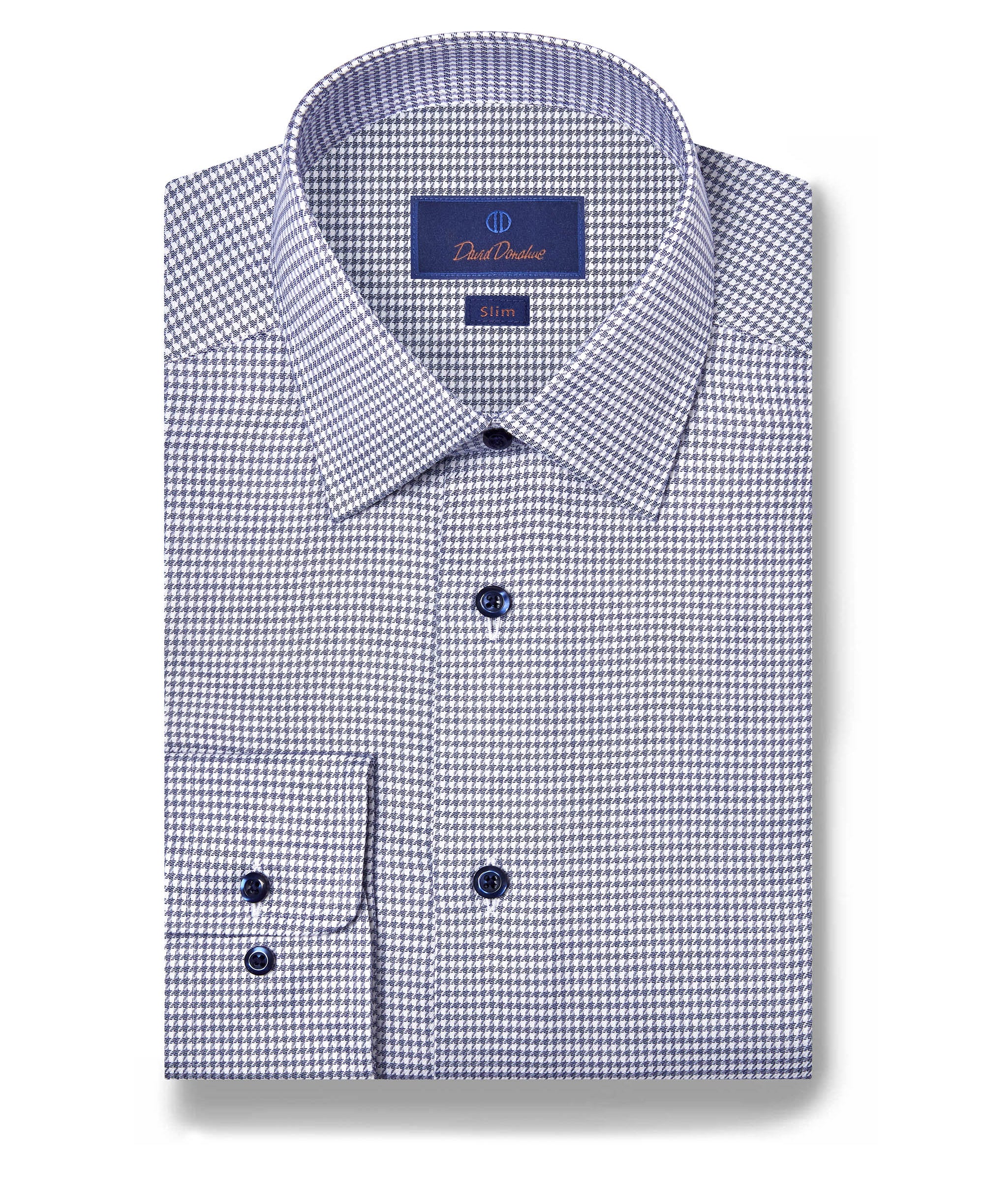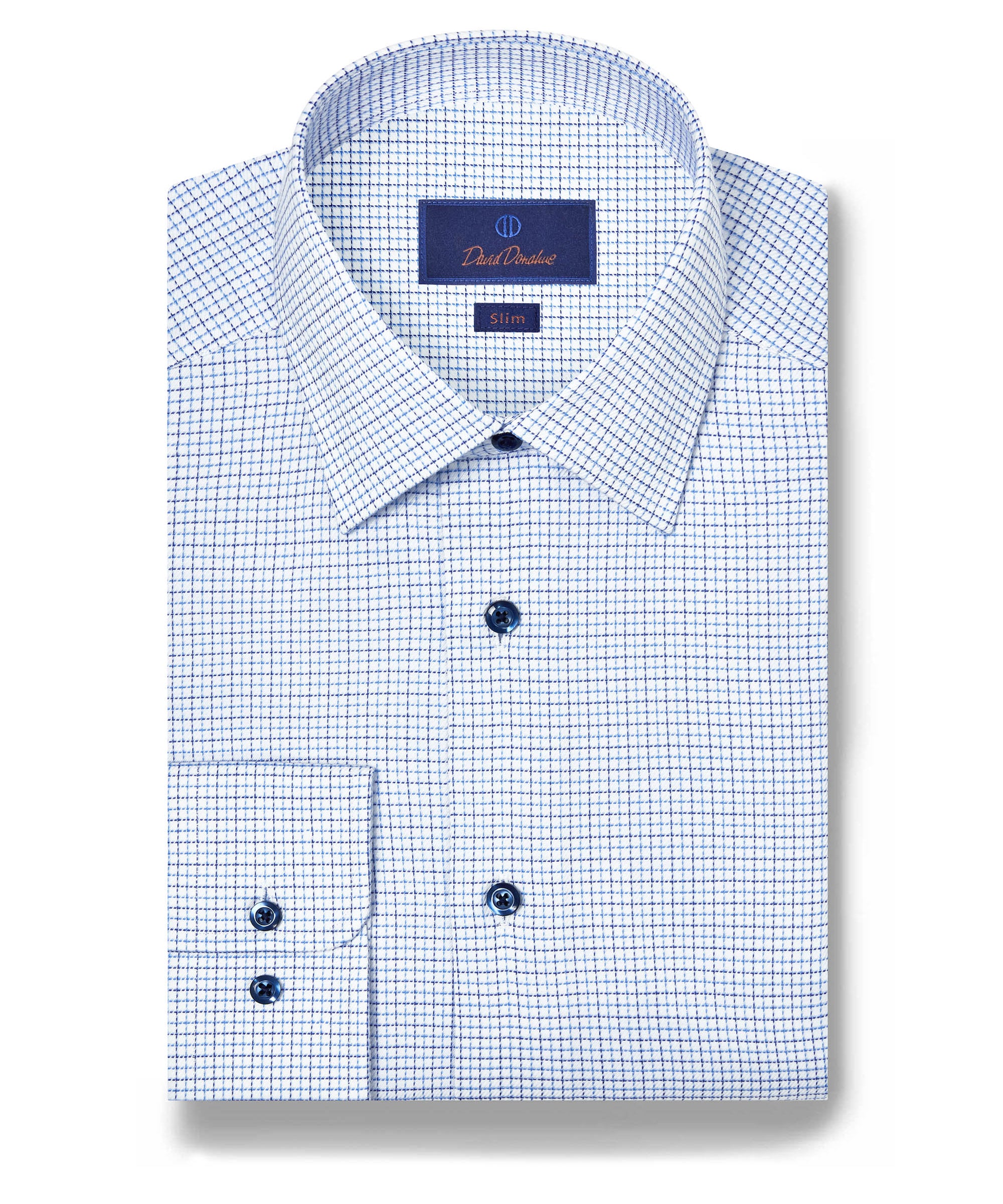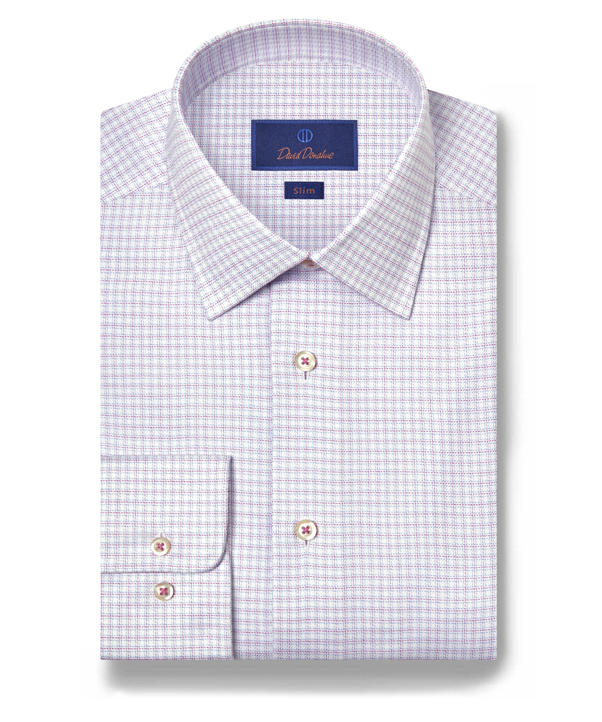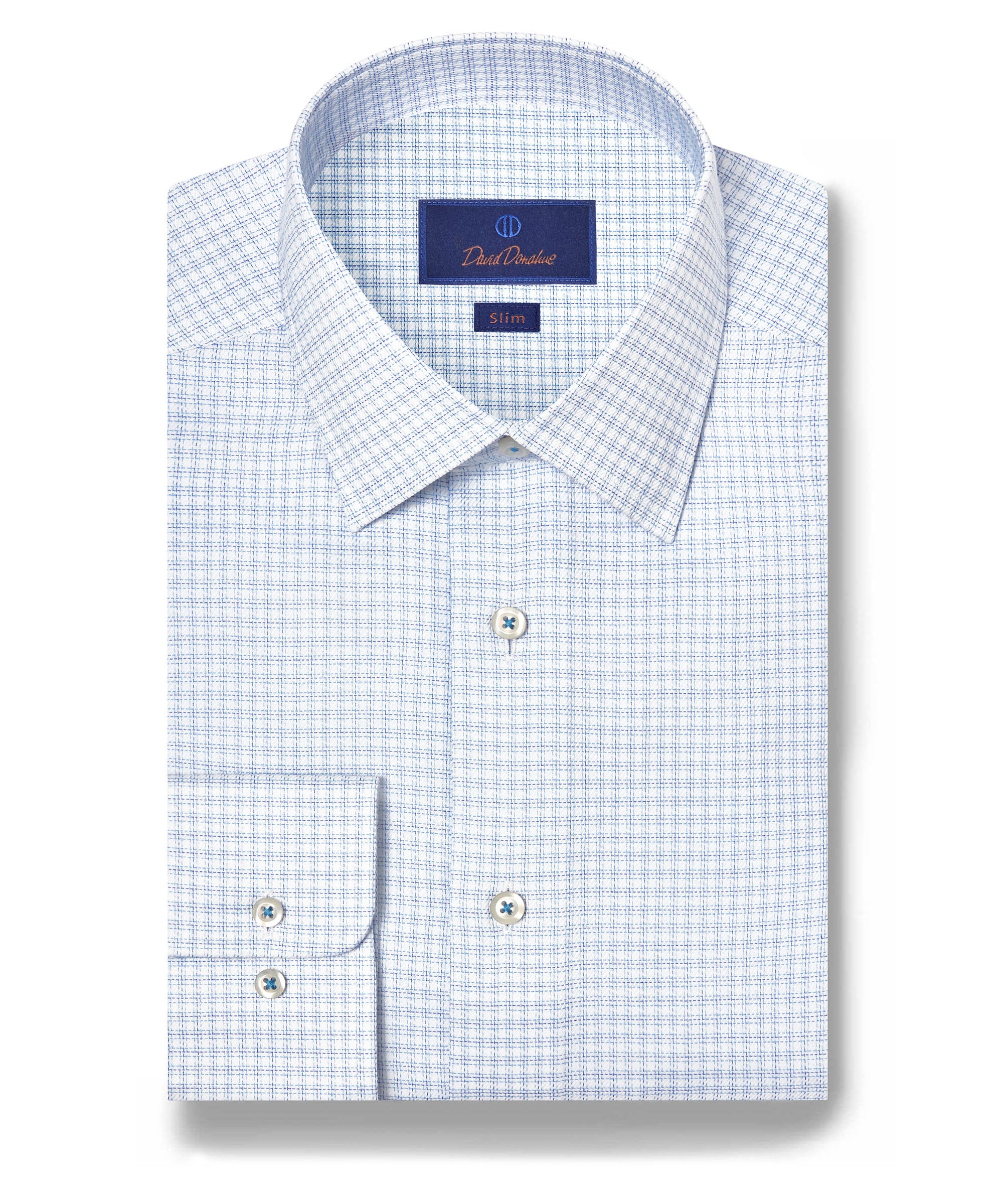 Available in a wide range of colors, patterns, and fabrics, David Donahue dress shirts are offered in three fits: Regular Fit, Trim Fit, and Slim Fit.