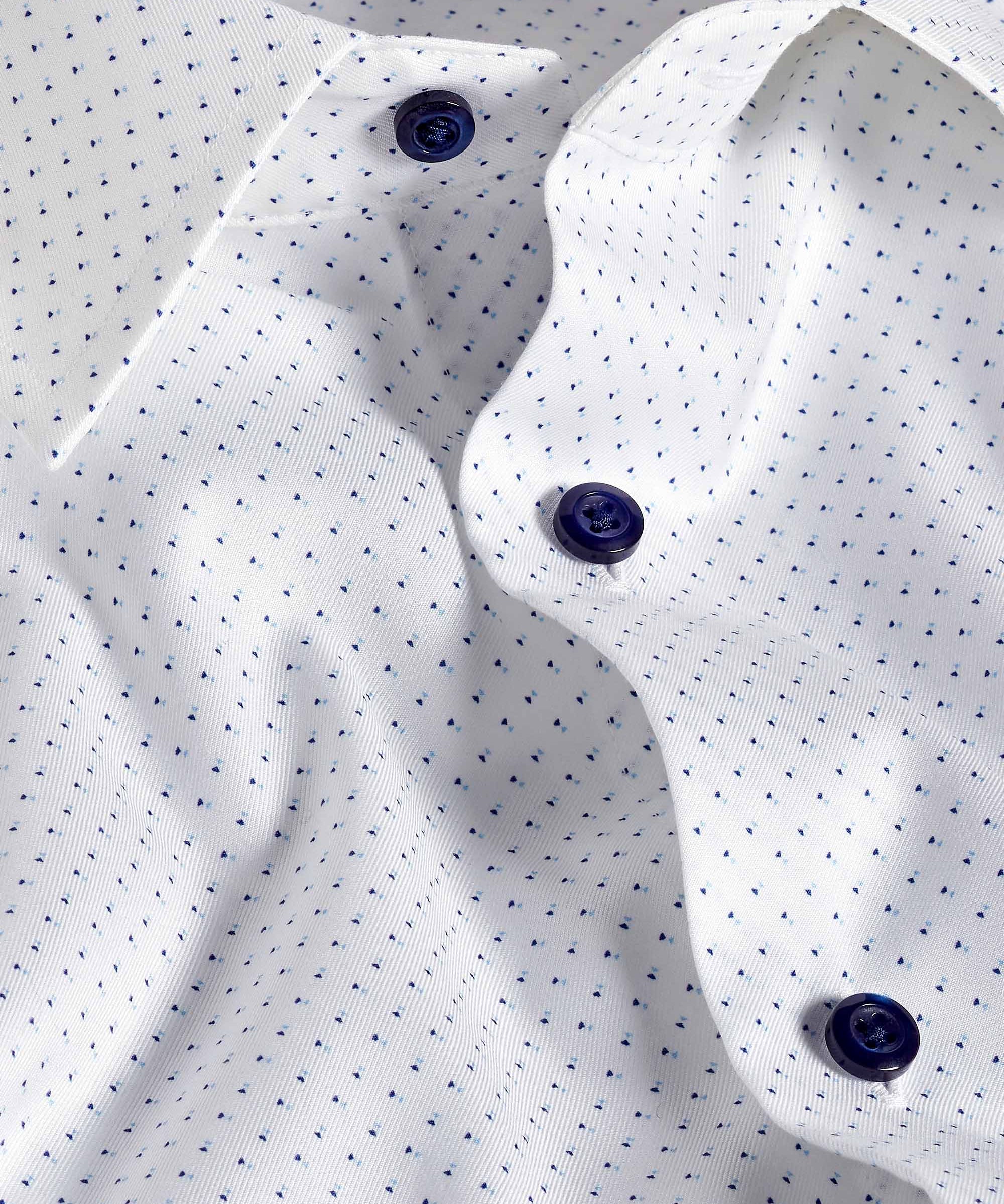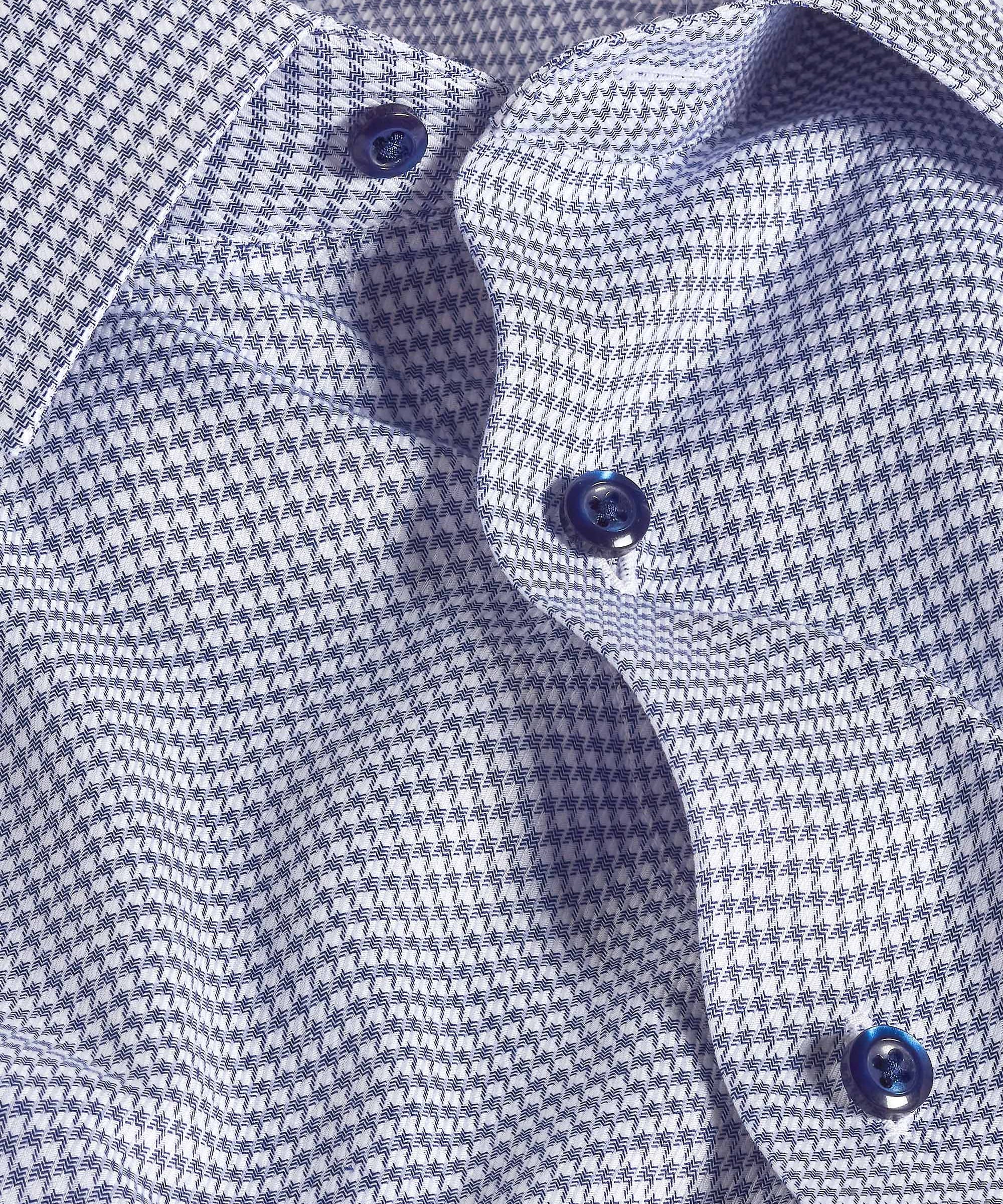 Navy & White Twill Micro Check Stretch Dress Shirt