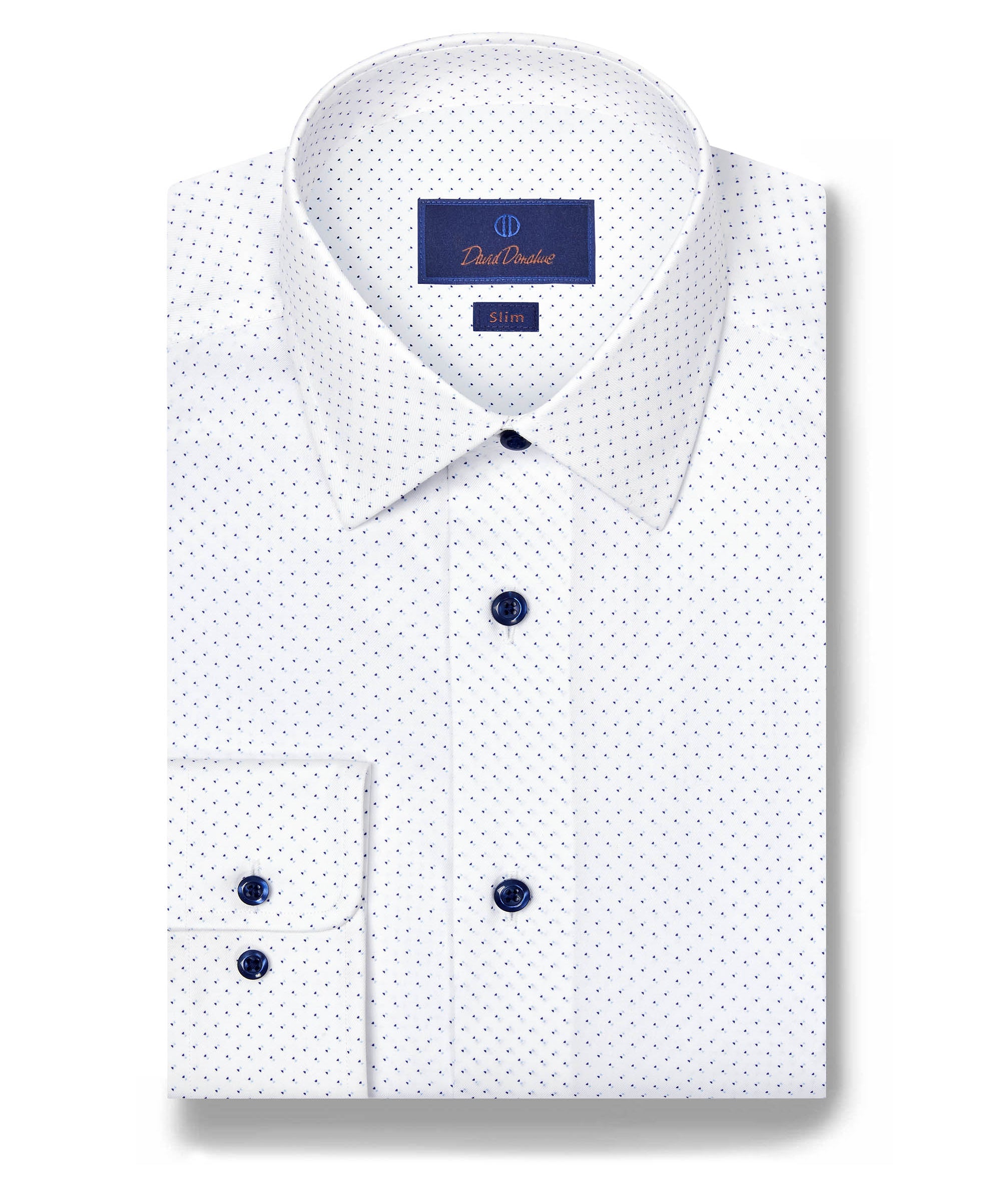 Available in a wide range of colors, patterns, and fabrics, David Donahue dress shirts are offered in three fits: Regular Fit, Trim Fit, and Slim Fit.