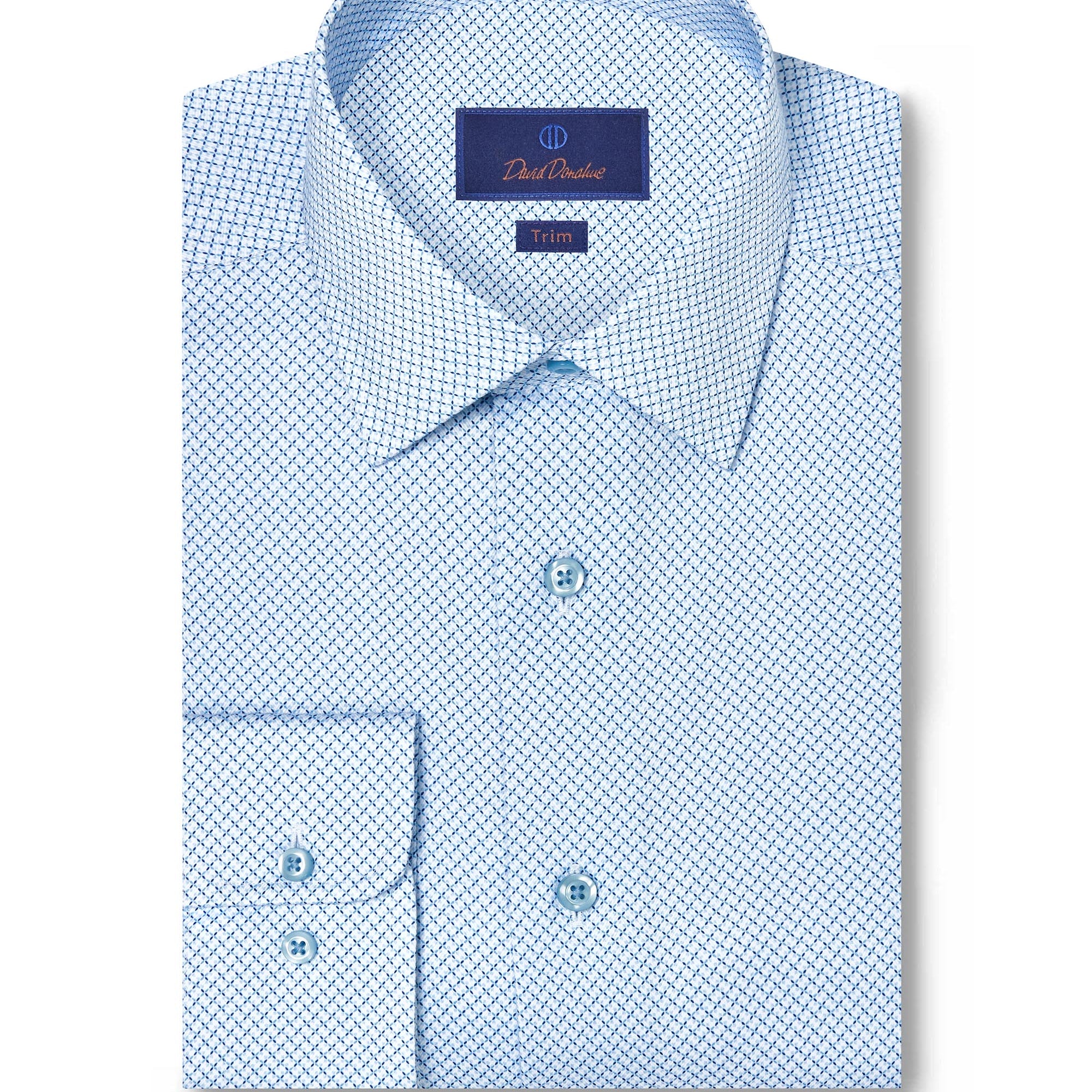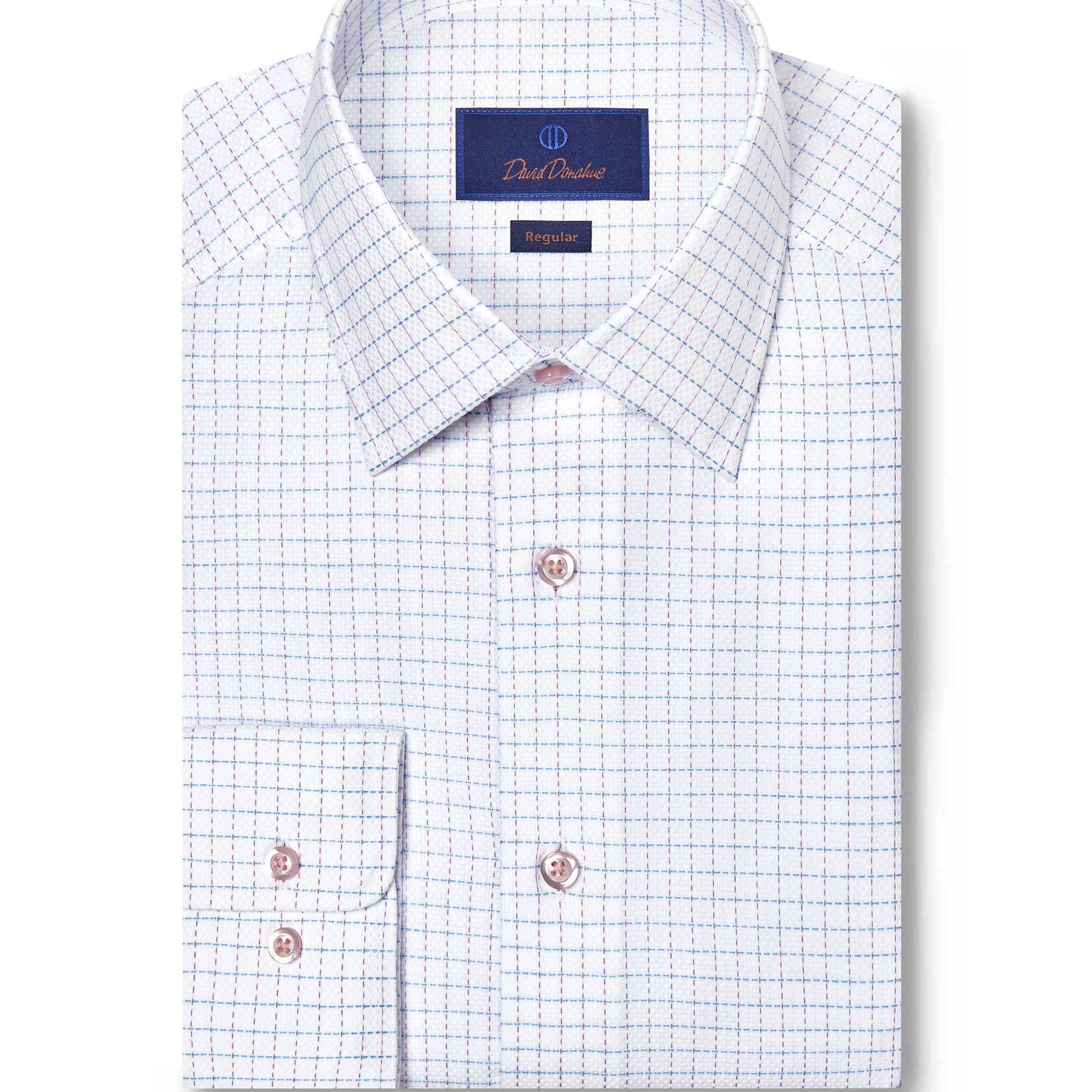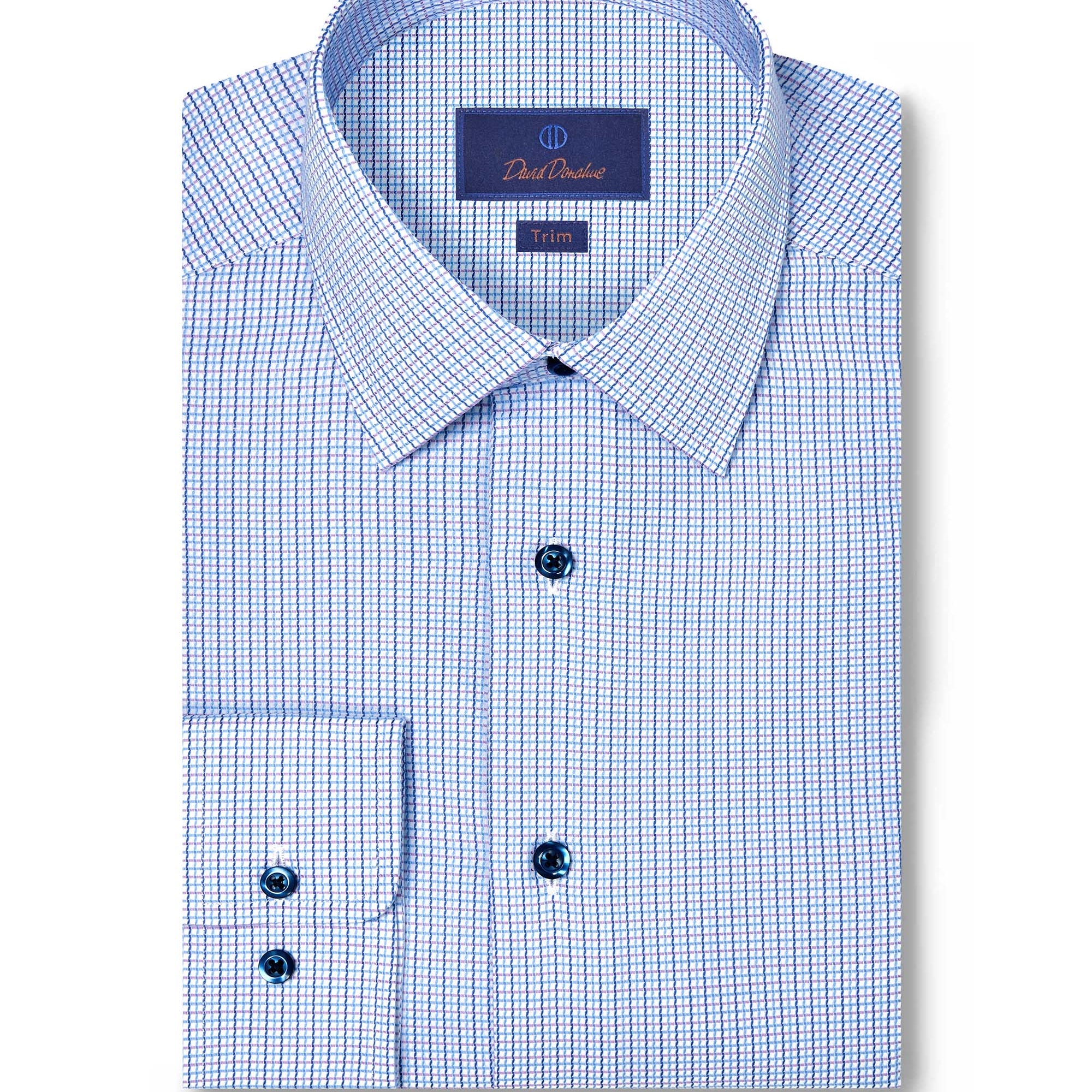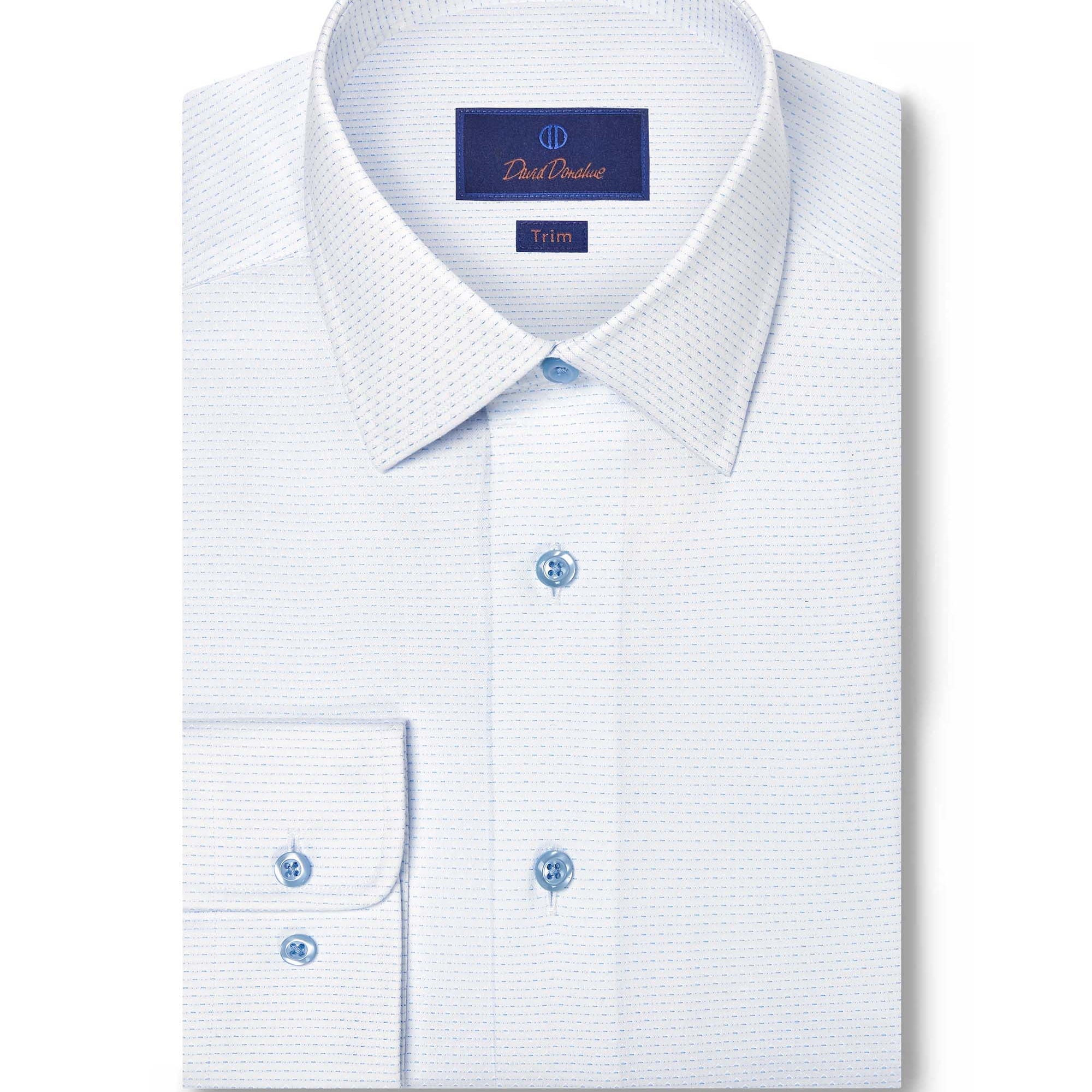 Available in a wide range of colors, patterns, and fabrics, David Donahue dress shirts are offered in three fits: Regular Fit, Trim Fit, and Slim Fit. Use our Fit Guide to find the perfect shirt for you.