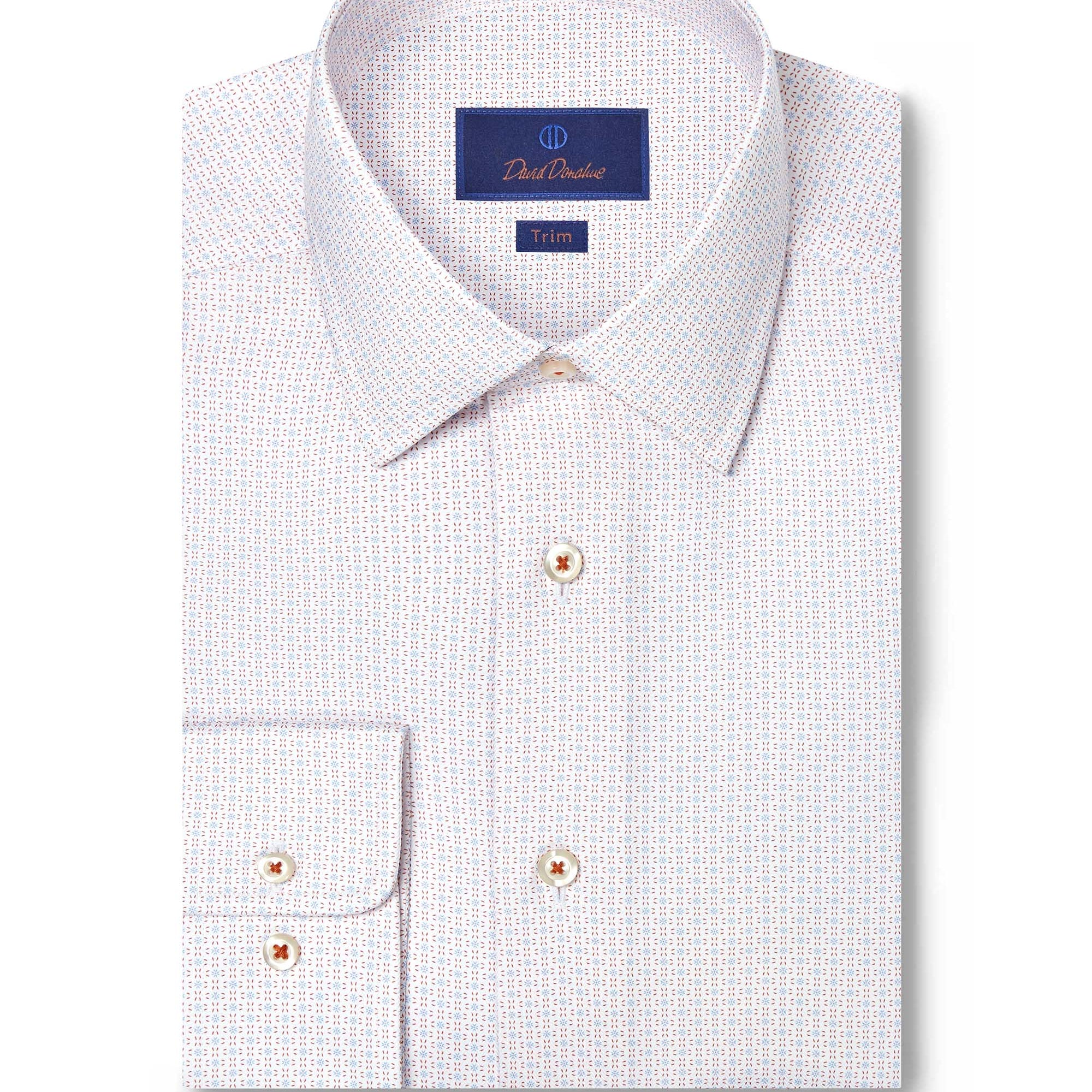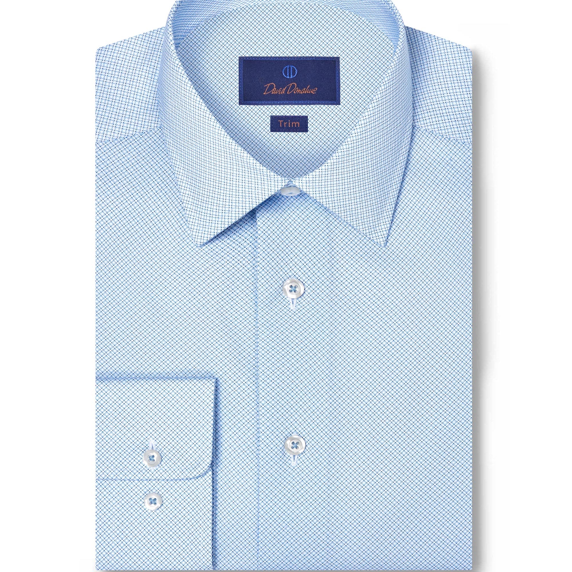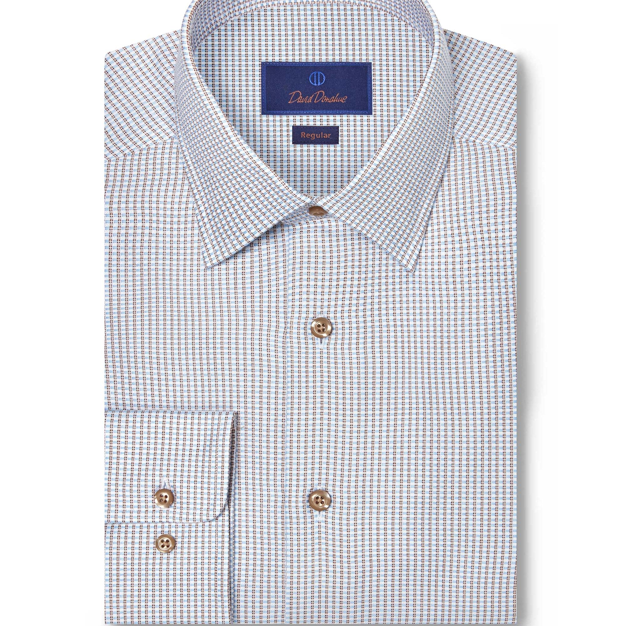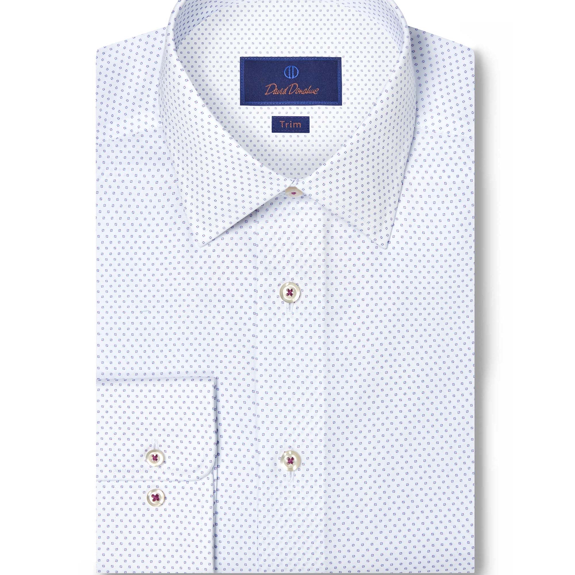 Available in a wide range of colors, patterns, and fabrics, David Donahue dress shirts are offered in three fits: Regular Fit, Trim Fit, and Slim Fit. Use our Fit Guide to find the perfect shirt for you.