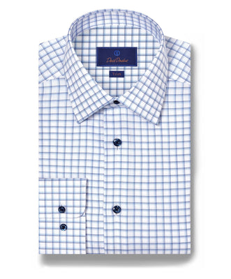 White & Blue Dobby Check Dress Shirt