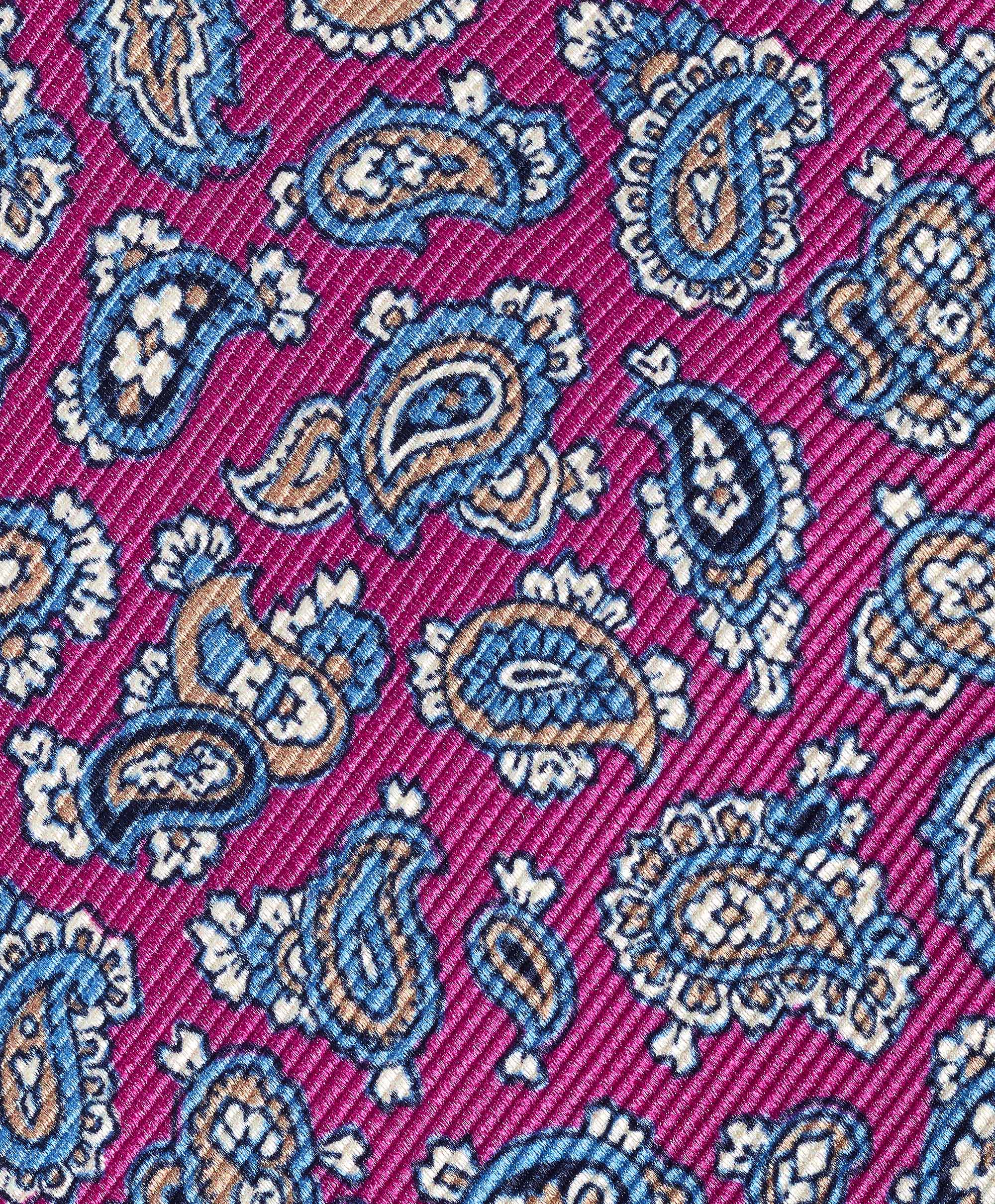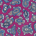 A berry-hued paisley pattern with global appeal. Woven from silk with a smooth finish, this tie carries a subtle sheen and clean structure. The intricate swirling motif of teardrop shapes on a block-print base adds visual interest, making it a unique yet elegant option across settings. Works well with both business and more relaxed tailoring.