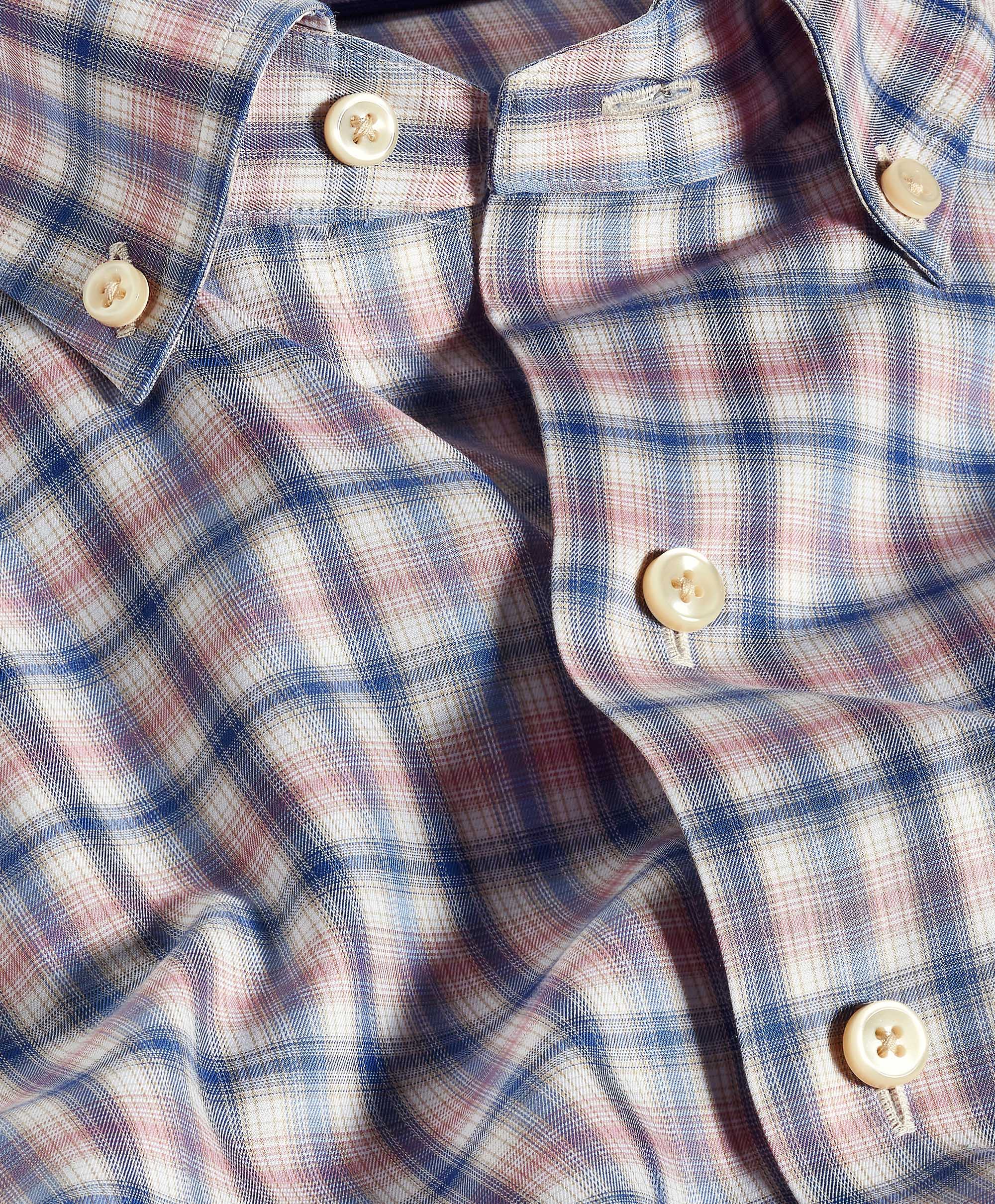 A classic plaid that feels ready for warm afternoons and weekend plans. Crafted from U.S. Pima cotton and woven in a softly textured twill, it has a natural luster and easy drape that stays composed throughout the day. The relaxed pattern brings timeless character to this button-down shirt. Wear it with denim, chinos, or shorts.