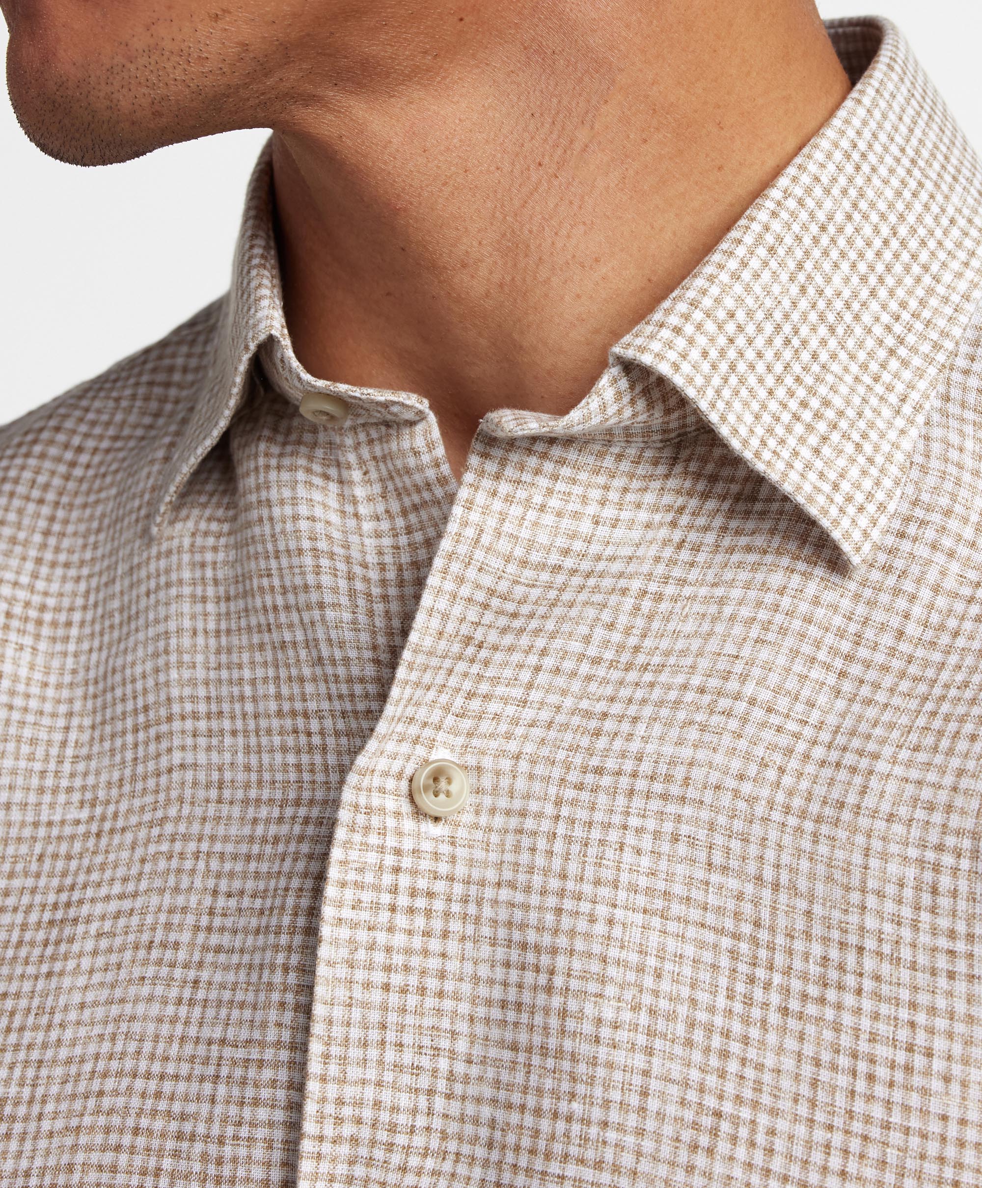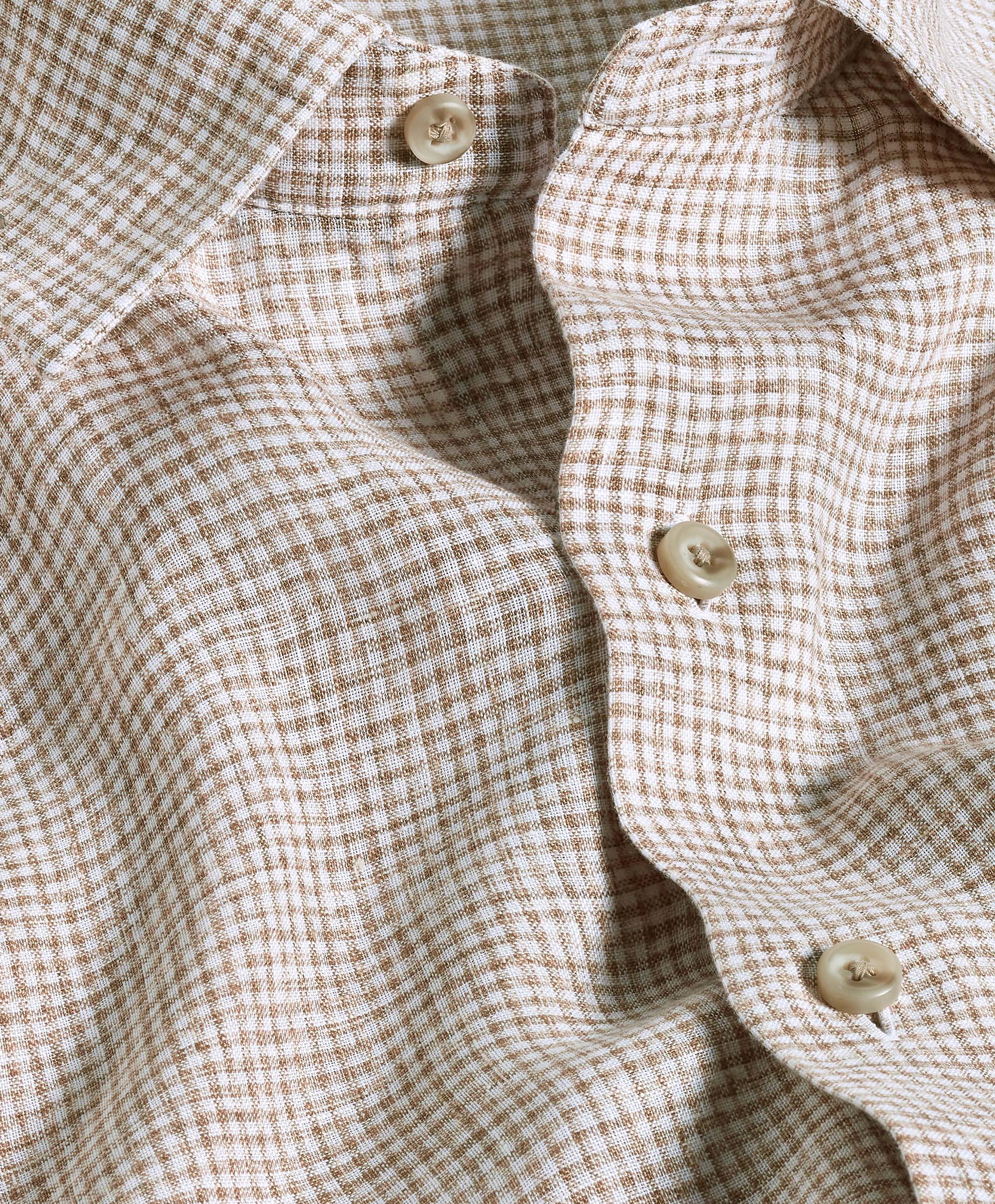 A classic check, blurred for easygoing charm. Crafted from 100% linen and woven in a crisp poplin, it feels light, breathable, and easy in warm weather. An ideal button-down shirt to wear with a relaxed suit, your favorite denim, or shorts.