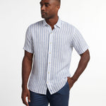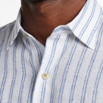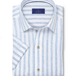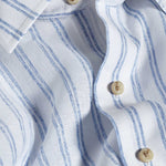 Clean stripes that feel coastal and relaxed, the kind that always look right in the sun. Crafted from 100% linen, woven in a crisp poplin that feels light and breathable in warm weather. A classic short sleeve button-down shirt to wear with a summer suit, relaxed denim, or shorts.
