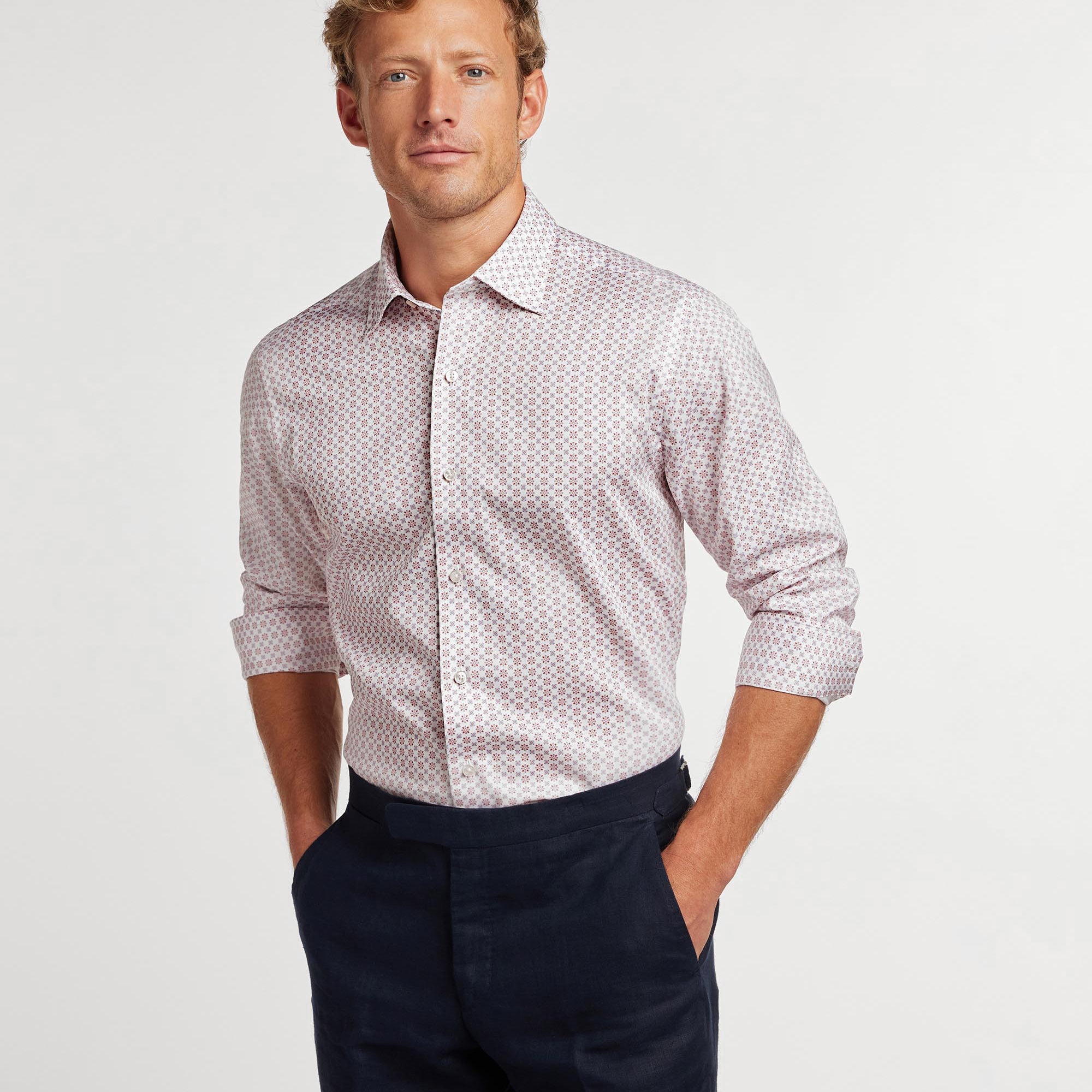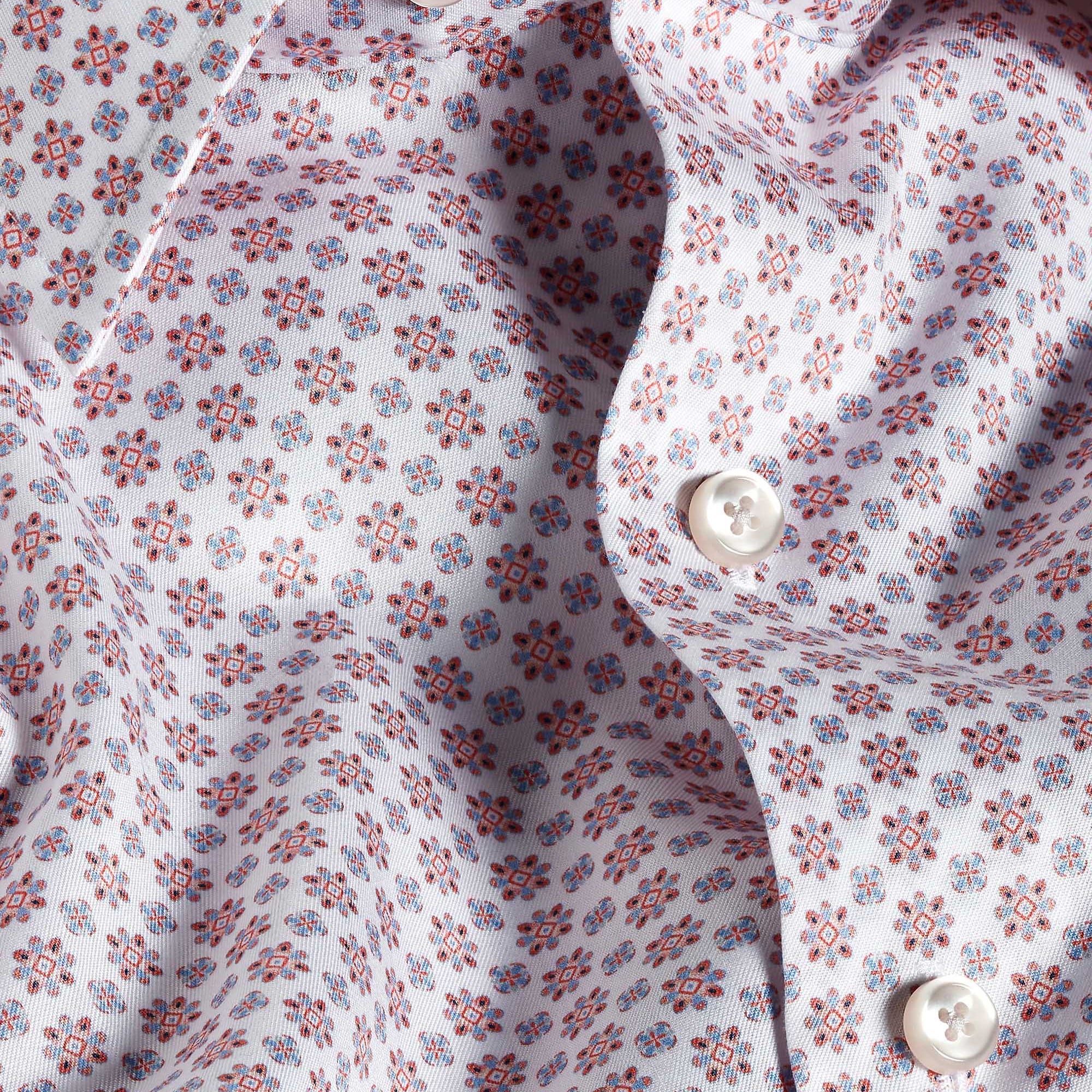 White & Coral Neat Print Sport Shirt