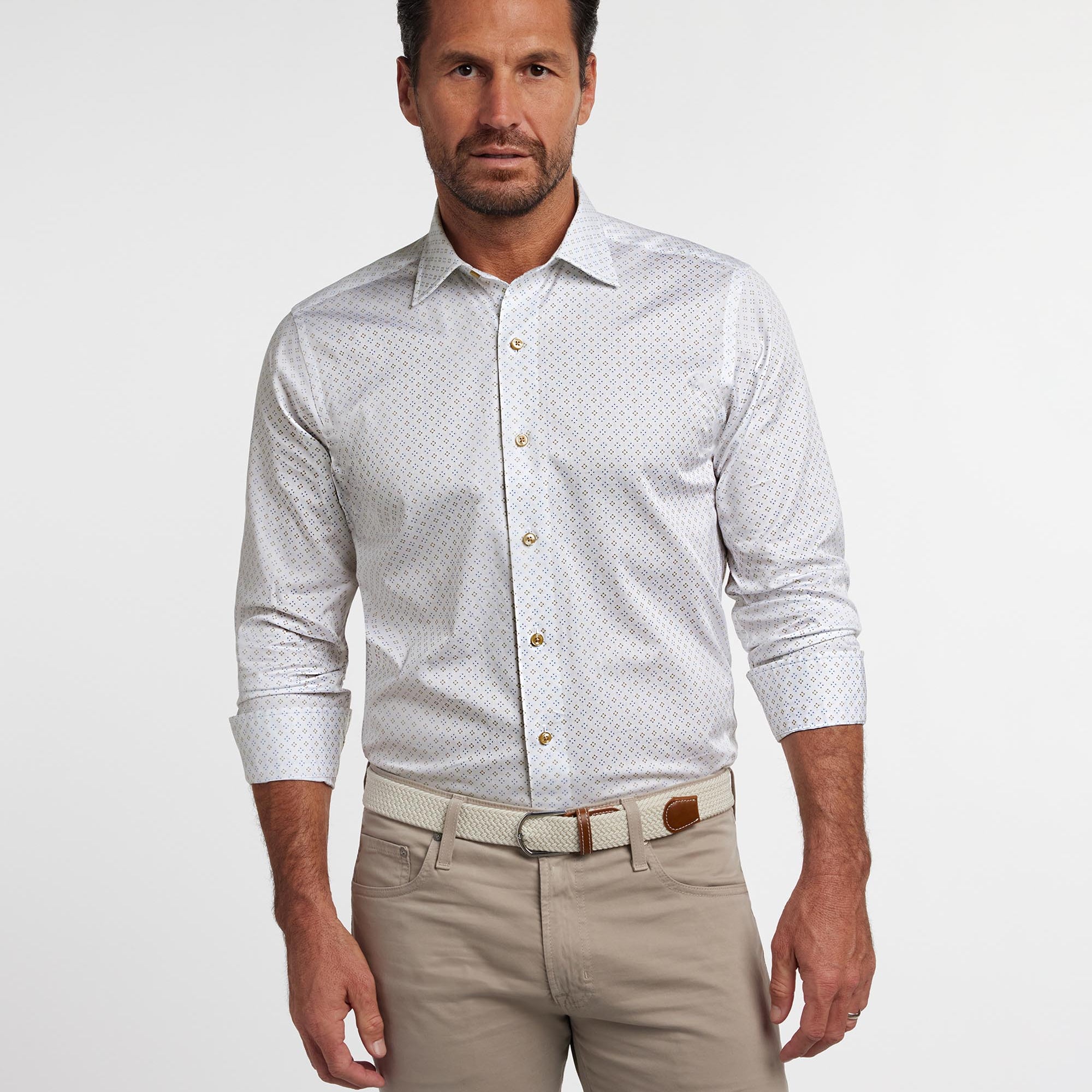 White & Sand Neat Print Sport Shirt
