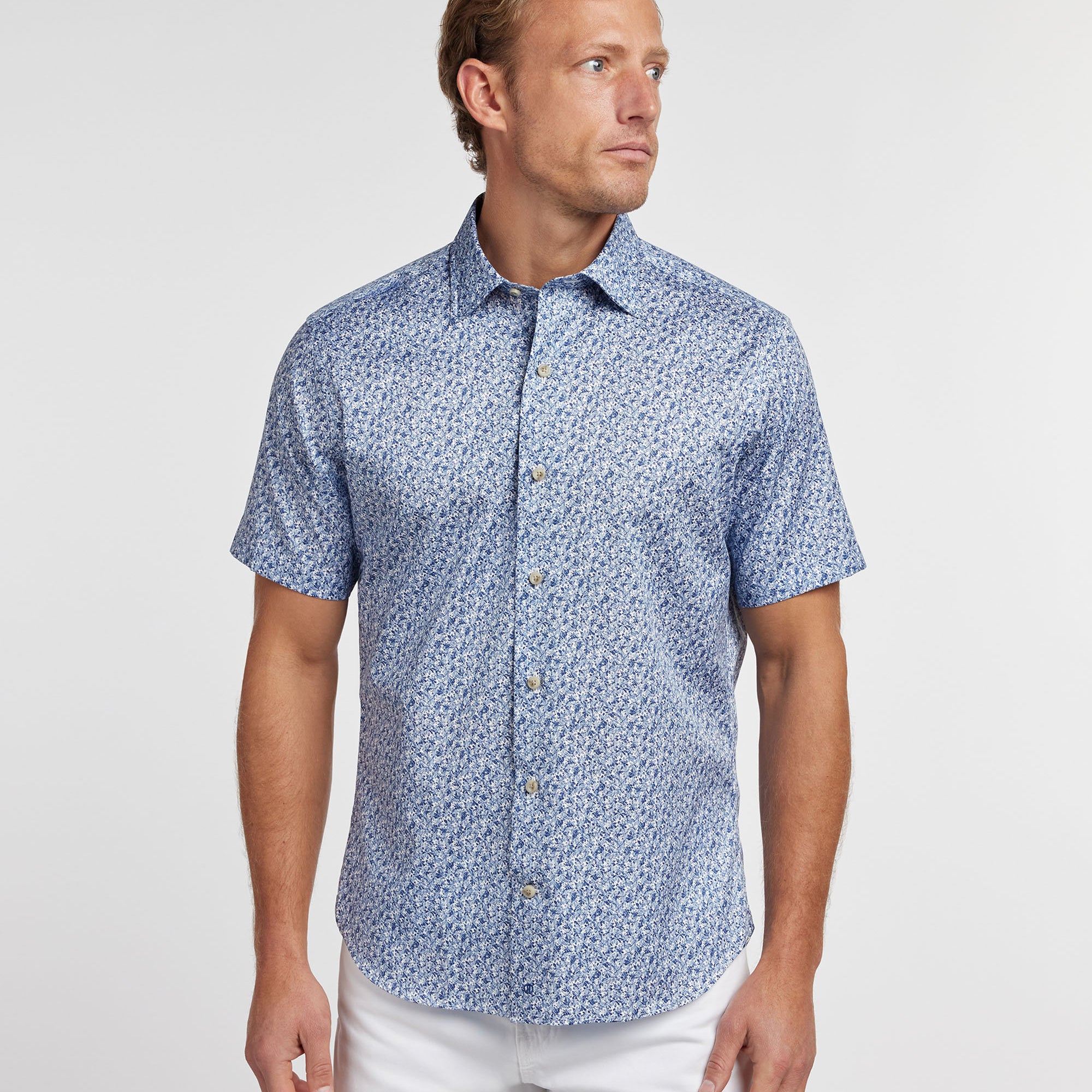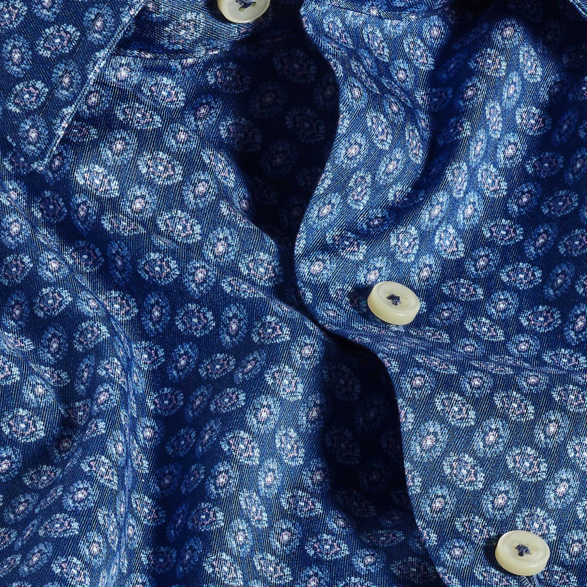 Navy Botanical Print Short Sleeve Shirt