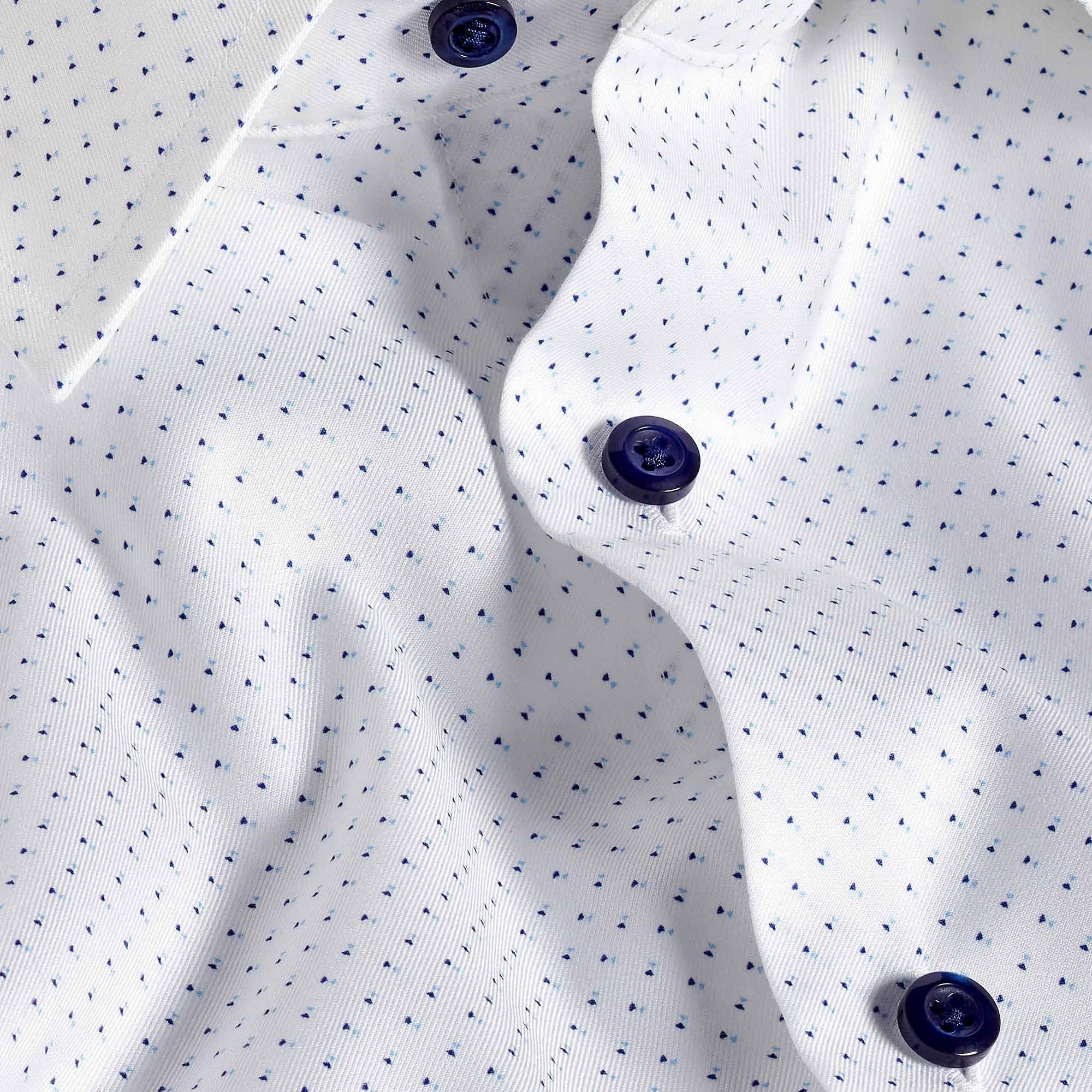 White & Navy Geometric Print Stretch Dress Shirt