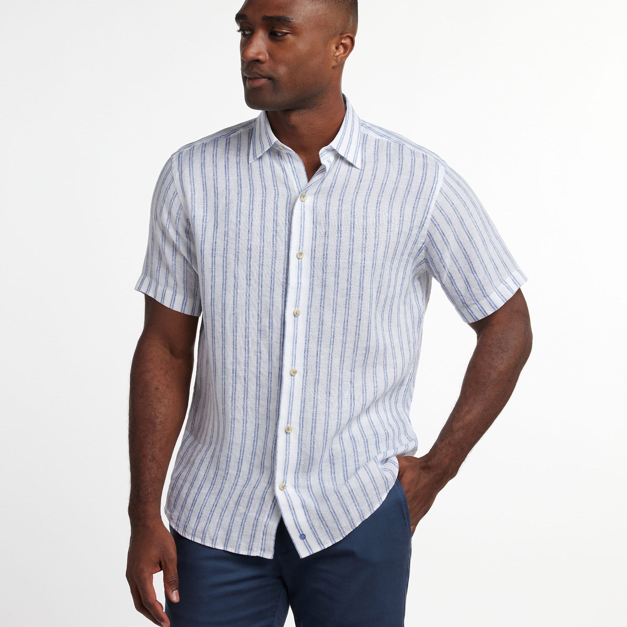 Sky Linen Blend Jacquard Short Sleeve Shirt