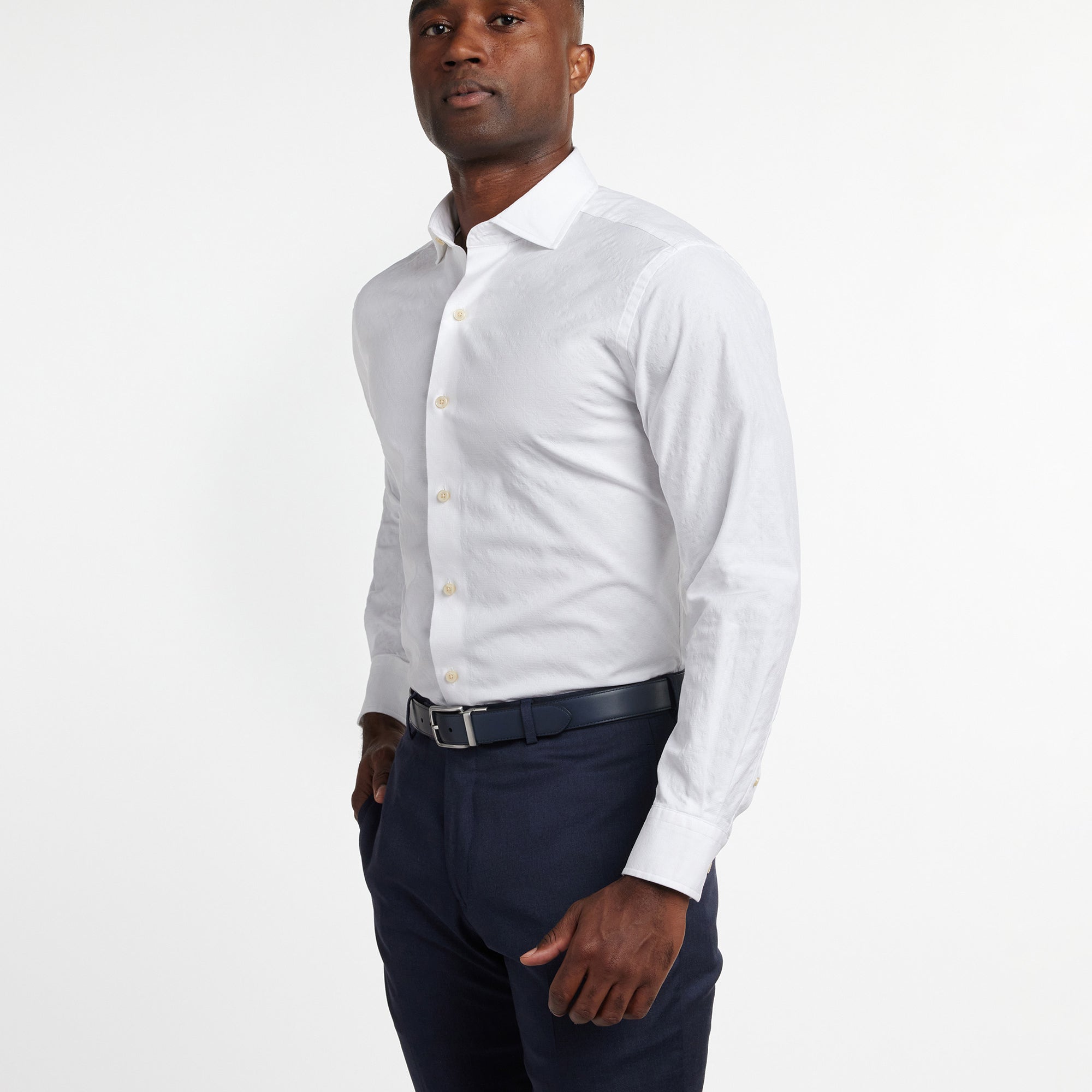 White Geometric Jacquard Sport Shirt