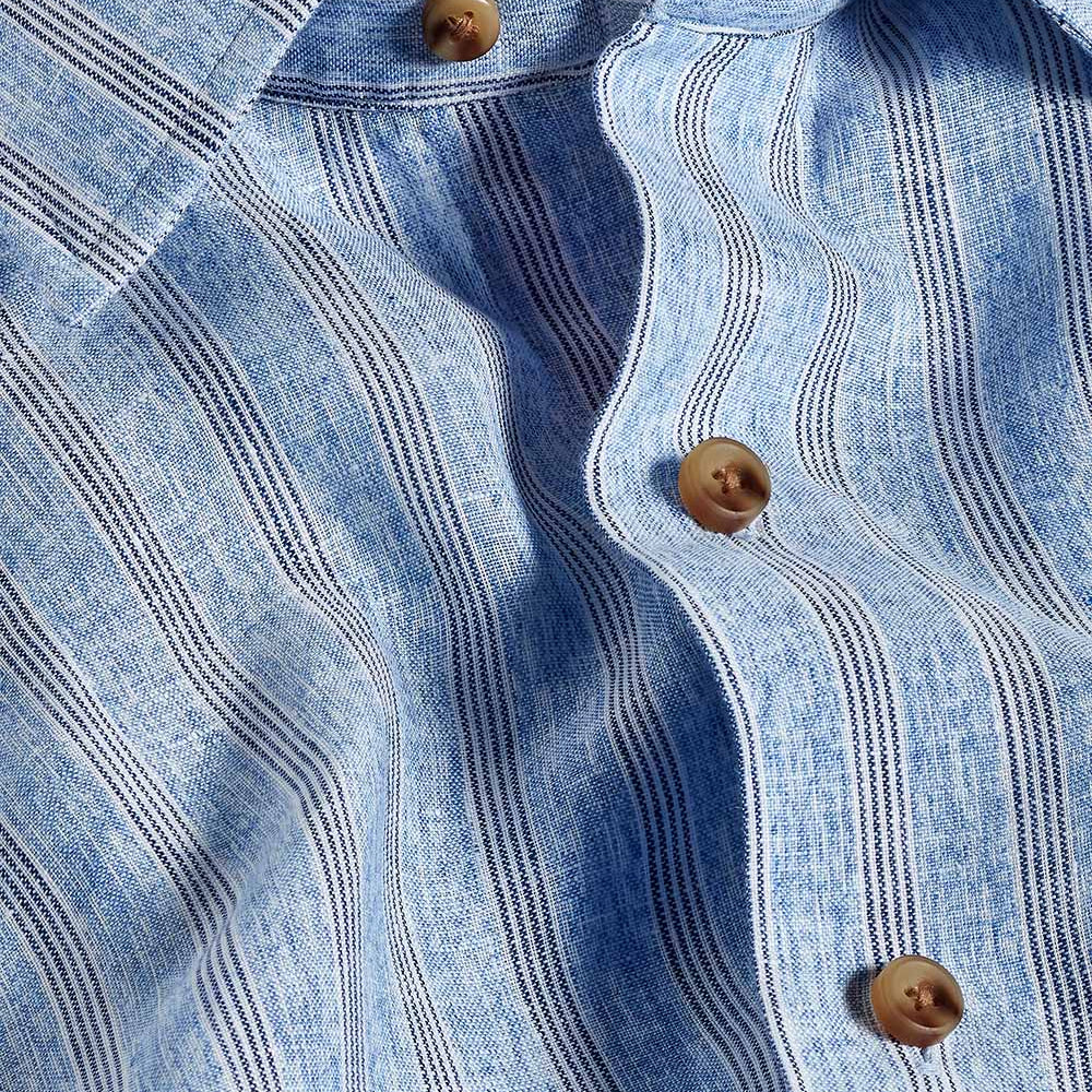 Blue Linen Stripe Short Sleeve Shirt