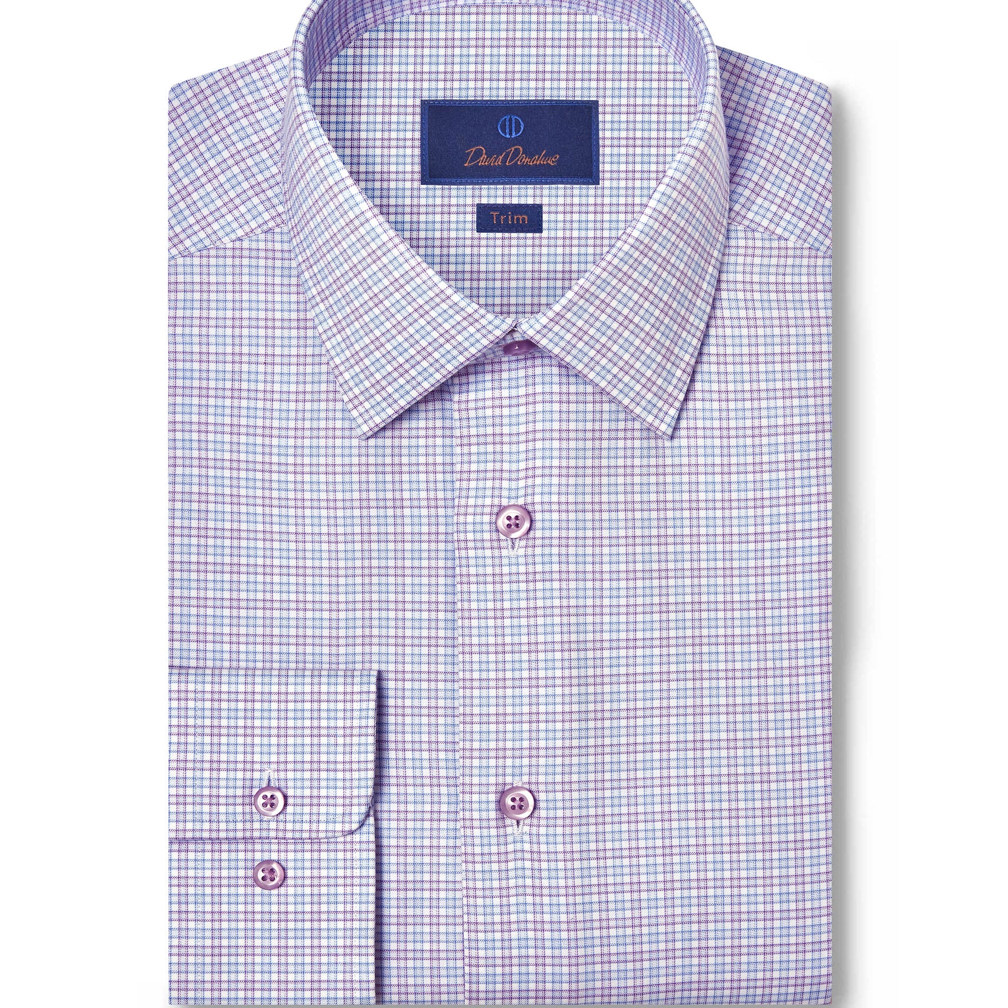 Blue & Purple Twill Check Dress Shirt