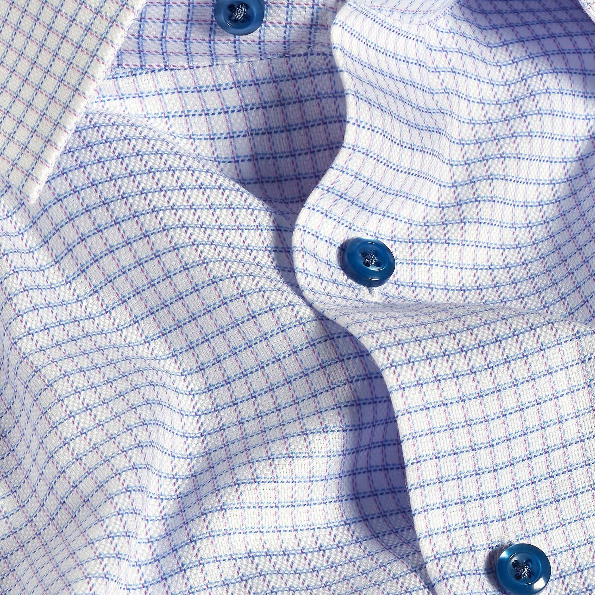 White & Blue Twill Check Stretch Dress Shirt