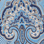 A sky blue paisley pattern with global appeal. Woven from silk in a jacquard pattern, this tie carries a subtle sheen and clean structure. The intricate swirling motif of teardrop shapes on a block-print base adds visual interest, making it a unique yet elegant option across settings. Works well with both business and more relaxed tailoring.